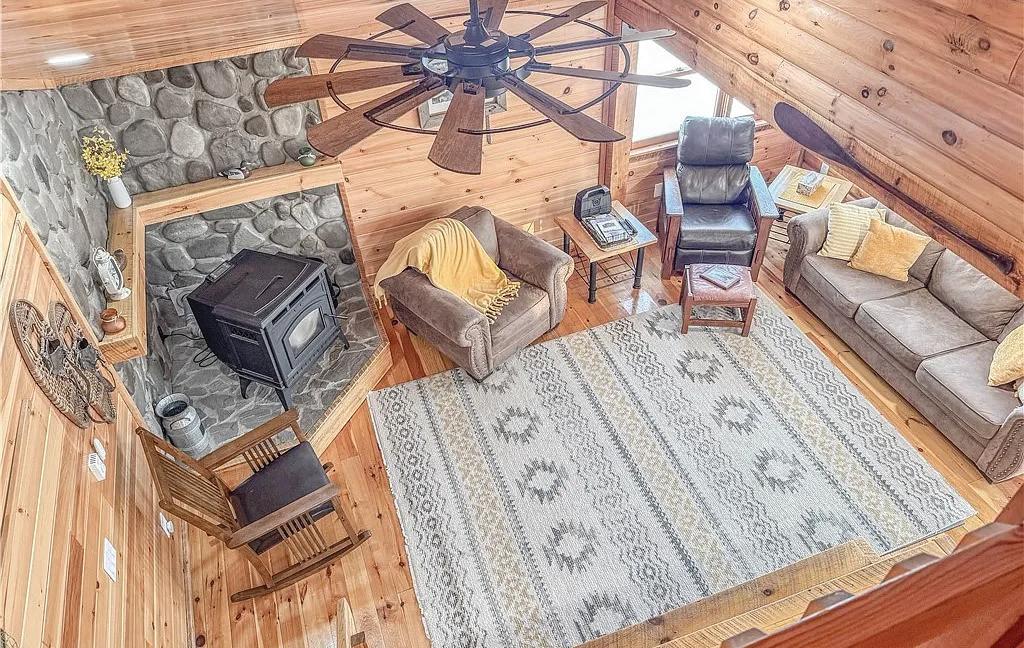 renewed with a Bath Fitter system. The second 1st Floor bedroom offers direct access to the deck through newly installed exterior doors. Comfort is further enhanced in the new edition by a 1.5-ton ceiling-mounted split A/C and heat pump and LED lighting. Relax in this lovely living room which centers around a gas fireplace. This home is equipped with both central air conditioning and a split system. The property is supported by a 22kW whole-house generator with an automatic transfer switch, three 100-gallon propane tanks plus a dedicated 60-gallon tank for the fireplace, copper roofing accents on the bay window and front porch, real brass exterior lighting, and new foundation doors in the addition. Storage is abundant with two sheds, two large storage container acts as a shed, and an additional matching exterior shed. Every improvement reflects careful planning and long-term durability, resulting in a home that feels fresh, refined, and fully prepared for its next owner. What a treasure! Call to schedule a showing today!
