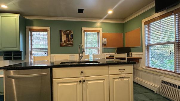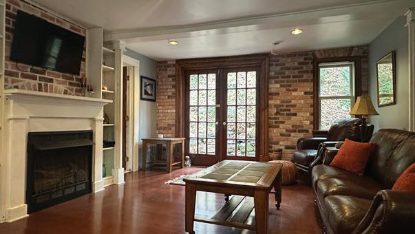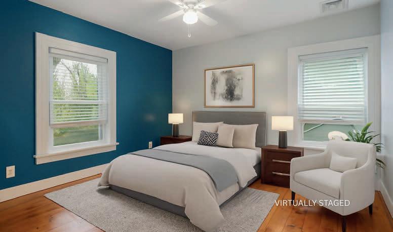 The floor plan is genuinely unusual, and genuinely useful. Each of the three bedrooms has its own full bath — a setup that naturally lends itself to bed-and-breakfast use, multi-generational living, or simply the kind of hospitality that Highland has always been known for. A first-floor bedroom and in-home laundry add practical flexibility. The spacious living area flows into a formal dining room and an updated kitchen that doesn’t fight the home’s bones.