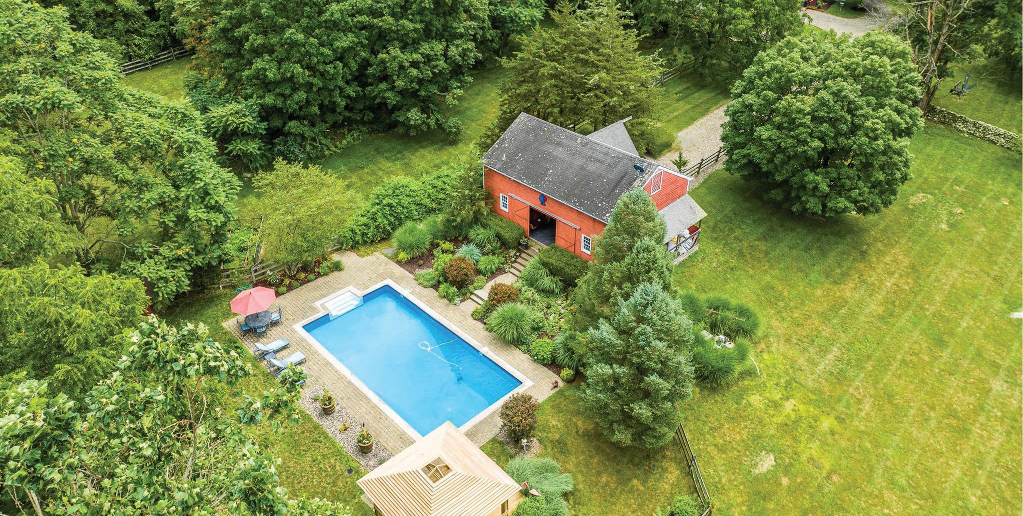 Tucked behind a quiet country approach, two meticulously restored 19thcentury barns have been reimagined into a refined luxury residence and companion pool house that feel timeless in character and elevated in execution. Inside the main residence, soaring vaulted ceilings, original hand-hewn beams, and wide-plank floors establish a sense of warmth and permanence, while expansive walls of glass invite natural light and create a seamless connection to the surrounding landscape. At the heart of the home, a beautifully appointed country kitchen anchored by a wood-burning fireplace is designed for both slow mornings and elegant entertaining. A dramatic great room and adjoining music room provide generous gathering spaces, while three bedrooms offer private, hotellevel comfort for guests. Outdoors, a heated in-ground pool is set among stone terraces and anchored by a fully outfitted luxury pool house with kitchen, bedroom, and bath, ideal for hosting, unwinding, or extended stays. The setting offers exceptional privacy while remaining effortlessly connected. Located less than 75 miles from New York City and just 10 minutes from the center of Millbrook, the property delivers the best of Hudson Valley living. World-class wineries, scenic hiking trails, equestrian estates, and farm-to-table dining are moments away, creating a lifestyle defined by balance, where weekend escape meets full-time retreat. This is not a conversion. It is a destination. A rare offering where historic architecture, modern luxury, and the rhythms of country life converge, all within easy reach of the city.