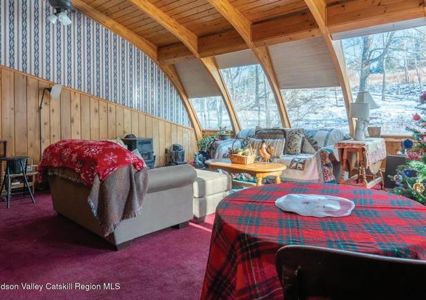 Modern Log Chalet on 22 Private Acres - Beautiful custom-built log chalet, set on 22 secluded acres with panoramic mountain views. This well-maintained home offers an open floor plan, natural wood finishes, and abundant light throughout. Enjoy outdoor living on the expansive wrap-around porch, perfect for relaxing or entertaining. This property is a very successful Airbnb with a strong rental history and excellent reviews. Located in the heart of the Catskills, you’re just a short drive to charming restaurants, breweries and wineries - making this the ultimate four-season getaway or full time residence. Only a short drive to multiple ski resorts!