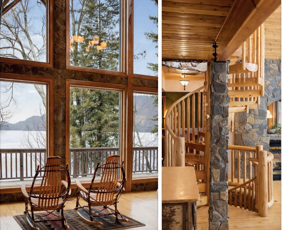 Experience exceptional Adirondack lakefront living at this stunning Brant Lake property offered at $2,599,000. Built in 2005 and thoughtfully designed to capture the beauty of its surroundings, this 3-bedroom home with 2 additional sleeping areas offers 3,113 square feet of above-grade living space plus a finished lower level ideal for entertaining. The heart of the home features dramatic window walls on the main level, perfectly oriented to showcase expansive southern views down Brant Lake, filling the space with natural light and bringing the outdoors in. A striking blend of wood and stone craftsmanship defines the interior, highlighted by two double-sided gas fireplaces and a custom three-story spiral staircase with birch bark accents that serves as a true architectural centerpiece. The kitchen is both functional and distinctive, offering custom finishes that complement the home’s warm Adirondack character. The lower level provides a spacious game room and additional gathering areas, creating the perfect environment for hosting family and guests. Step outside to enjoy a sandy beach, included docks, and a beautifully designed stone fire pit overlooking the lake--ideal for evenings by the water. Expansive decking and outdoor living spaces enhance the connection to the natural setting, while the home’s elevated position captures long lake views. A detached 3-car garage with guest apartment above adds flexibility and privacy for visitors. Additional features include a whole-house generator, highspeed internet, exterior sprinkler system, and negotiable furnishings. This is a rare opportunity to own a true generational Adirondack lakefront property combining privacy, craftsmanship, and exceptional lakefront living on Brant Lake.