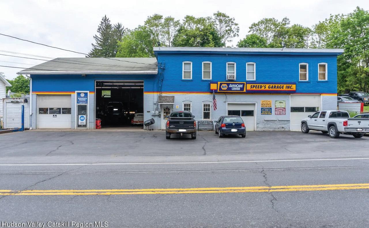 3,720 SQFT Speeds Garage - A Rare Commercial Opportunity in the Heart of Claverack. Unlock the potential of this unique property offering both commercial and residential possibilities! Located in a prime, high-visibility spot in Claverack, Speeds Garage has long served the community and continues to be a thriving business since opening in 1982. So whats included? Indoor and outdoor car lifts, NYS Inspection station, used car sales dealer, tools, etc. Three two trucks are negotiable. The main level features an established garage/workshop with multiple bays, high ceilings, and plenty of space for tools, equipment, or your next business venture. Whether you’re an auto enthusiast, mechanic, or entrepreneur, this space is ready to roll. One acre of land spanning both sides of Route 217 all zoned commercial. Above the garage, you’ll find a spacious 3-bedroom, 1-bath apartment—perfect for owner-occupancy, rental income, or employee housing. With a private entrance, full kitchen, and natural light throughout, it offers comfortable and convenient living quarters. Whether you’re looking to live, work, or invest, this property offers the versatility and value you’ve been waiting for.