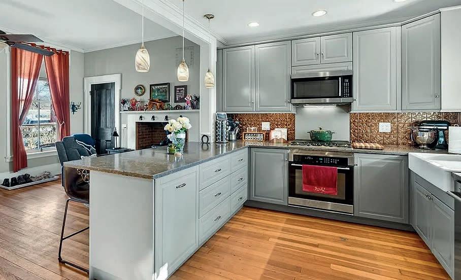 This 3-bedroom, 2-bath single-family home offers 1,440 square feet of character-filled living space, thoughtfully updated to blend modern comfort with timeless charm. Original wide-plank hardwood floors run throughout, paired with an open, updated kitchen featuring granite countertops, high-end stainless steel appliances, and a cozy wood stove for winter warmth. A sun-drenched laundry room with newer appliances adds functionality, while electric baseboard heat with room-by-room thermostats provides efficient control.