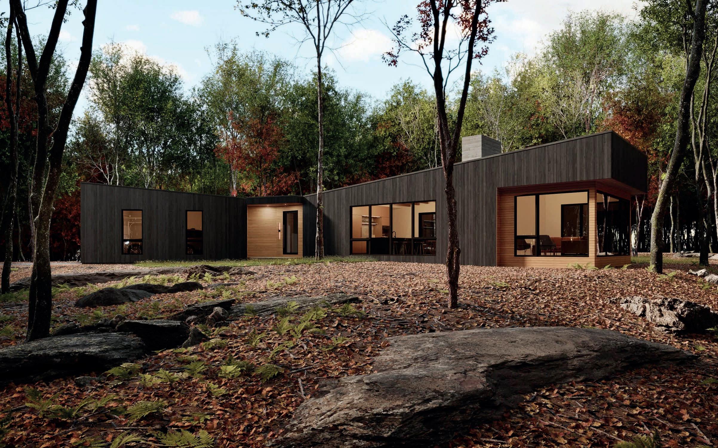 On 2.44 serene acres in the Woodstock Hamlet of Wittenberg—an exceptional to-be-built offering that brings together architectural vision, artisan materials, and the craftsmanship of noted builder James Nelson. This unique project includes a three-bedroom, threeand-a-half-bath main residence, a one-bedroom guest house, and a detached, oversized two-car garage with integrated workshop and storage, for a combined 3,440 square feet of thoughtfully designed living space. By working directly with James Nelson, you gain the rare chance to shape a compound tailored to your family’s needs—whether as a full-time multi-generational retreat, a year-round home base, or a refined escape for gathering and entertaining.Nelson will construct your home using indigenous Eastern White Pine harvested, milled, and cured on-site, an approach that ensures material quality