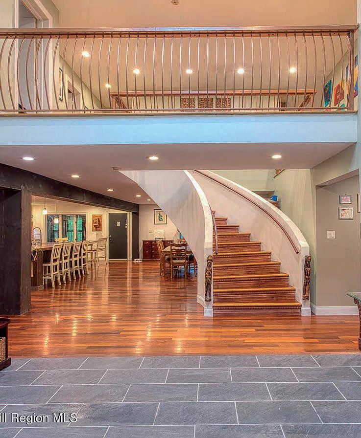 Secluded 6-Bedroom Estate with Seasonal Reservoir Views and Stunning Sunrises ! sauna, reservoir view, Woodstock, luxury kitchen, elevator shaft, accessibility and grand staircase Nestled on a quiet, picturesque road just 4 miles from the heart of Woodstock, this extraordinary 6-bedroom, 6-bathroom estate offers privacy, craftsmanship, and timeless character on nearly 2 acres of lush, serene land. Enjoy seasonal views of the Ashokan Reservoir and breathtaking sunrises that flood the home with natural light and beauty. Step inside to discover a warm and expansive interior filled with custom details. The main living area features Brazilian walnut flooring with a striking inlay of Coney Island boardwalk, while hickory wood runs throughout the upstairs and bedrooms. A unique curved staircase leads gracefully to the upper floor, where a hallway with balcony overlook adds architectural interest and airy openness. At the heart of the home is an incredible, chef-inspired kitchen—thoughtfully designed with custom-built counters and island, prep sink, pot filler, and an 8-burner stove with dual ovens. A hand-picked geode accent backsplash adds a stunning natural touch. The kitchen flows into an open-concept dining room, perfect for entertaining or cozy family meals. The Japanese-inspired master bathroom offers a true retreat, complete with a heated bench, sauna, and elegant spa-like finishes. This home is also designed with accessibility in mind, featuring wide doorways, a ramp for entry, and a built-in elevator shaft that connects the basement, main floor, and second story—making it ideal for multi-generational living or future adaptation. MLS #20253346