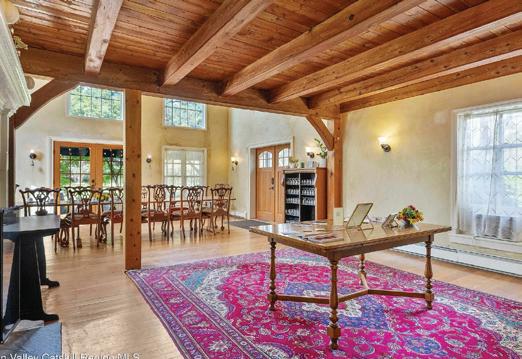 The property also includes ample parking and a professional-grade kitchen, ideal for both intimate breakfasts and large-scale catering. Completing the compound is a picturesque post-and-beam guest cottage, equally suited as an owner’s residence, artist’s studio, or rental opportunity. Its rustic craftsmanship, open floor plan, exposed beams, and abundant light highlight the region’s timeless character, with an upstairs suite adding flexibility. Just under two hours from New York City and nestled near Mohonk, Minnewaska, and Stone Ridge, Elmrock Inn offers both lifestyle and income potential: keep it as a thriving bed-and-breakfast, enjoy it as a grand private estate, or reimagine it as a creative retreat or Airbnb. Impeccably maintained and steeped in Catskill charm, this turn-key boutique farmhouse compound is ready for its next chapter.