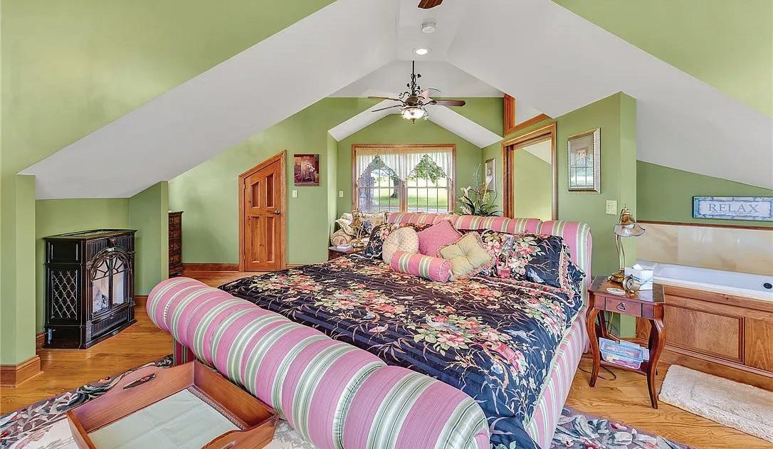 This old farmhouse has been renovated over the years. Sitting on the 5 acres is an old cow barn with a chicken coop, silo and milk house, another large pole barn that could be used for anything, an inground pool with a pool house that has the pump room and kitchenette with running water and space to relax out of the sun or change out of wet bathing suits. When you enter the home by the garage, you are greeted with a mudroom that extends to butler's pantry with loads of cabinets and counter space. The kitchen has a good work flow and a small half bath. Entering the formal dining room, there are beautiful built ins, and the original hardwood floors flow throughout the main level. Off the back of the dining room is another small room, perfect for an office or small guest room. The living room is bright and spacious with the fireplace as its focal point. Up the staircase are 5 bedrooms and a bathroom. The new laundry room is also located down the hall before stepping down into the primary suite. There are French doors giving a beautiful view of the backyard and pool area. The bathroom is stunning, with a wall of windows, a jetted tub and a gorgeous shower. All of this area (the laundry room and primary bedroom suite) is NOT included in the square footage from Real Property. This home is almost 4,000 square feet!