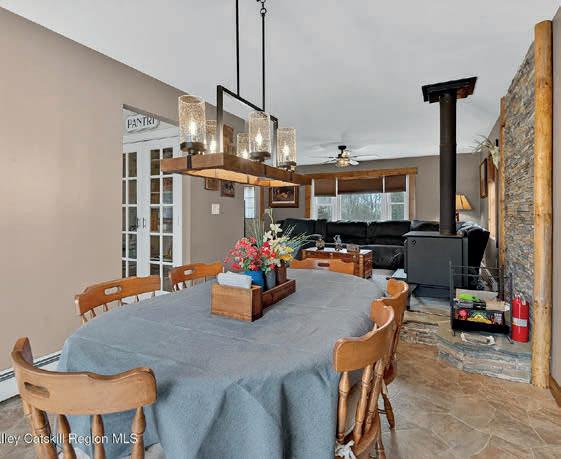 4 BEDS • 2 BATHS • 2,326 SQFT • $599,000 TOPNE HOUSE SUNDAY 11/16 12 TO 2. Welcome Home to 94 Lodge Road, Saugerties. Tucked away on one of Saugerties’ most desirable no-outlet roads, this beautifully remodeled high ranch offers the perfect blend of privacy, comfort, and convenience. Set on 3.51 acres cleared just enough for open space yet bordered by timeless stone walls and woods, you’ll feel surrounded by nature without ever feeling isolated. Step inside and you’ll immediately notice the flow of natural light pouring through the many windows, bringing the outdoors in. Imagine cozy evenings in the spacious living room with hardwood floors, or hosting family and friends in the open kitchen and dining area that seamlessly extends into the 12x26 three-season room. From there, step onto the rooftop deck where countless gatherings and sunsets have been celebrated. The main level offers two inviting bedrooms and a full bath with direct access to the primary bedroom. Downstairs, all-new laminate flooring ties together a warm and versatile lower level. Picture cozy winter nights by the stone fireplace in the family room, afternoons spent in your own craft space, and quiet mornings working from your private office. With two additional bedrooms, a full bath with washer/dryer hookup, and plenty of storage, there’s room for everyone, and everything. An oversized two-car garage makes daily life simple, while the location makes it special. Lodge Road is known for its peaceful setting, seasonal mountain views, and homes thoughtfully set back from the road. Yet, you’re just minutes from the Thruway, the vibrant village of Saugerties, Hunter Mountain, and everything the Hudson Valley lifestyle has to offer. This is more than a home, it’s where memories are made. Where laughter around the fireplace, dinners on the deck, and morning walks in nature become your everyday life.