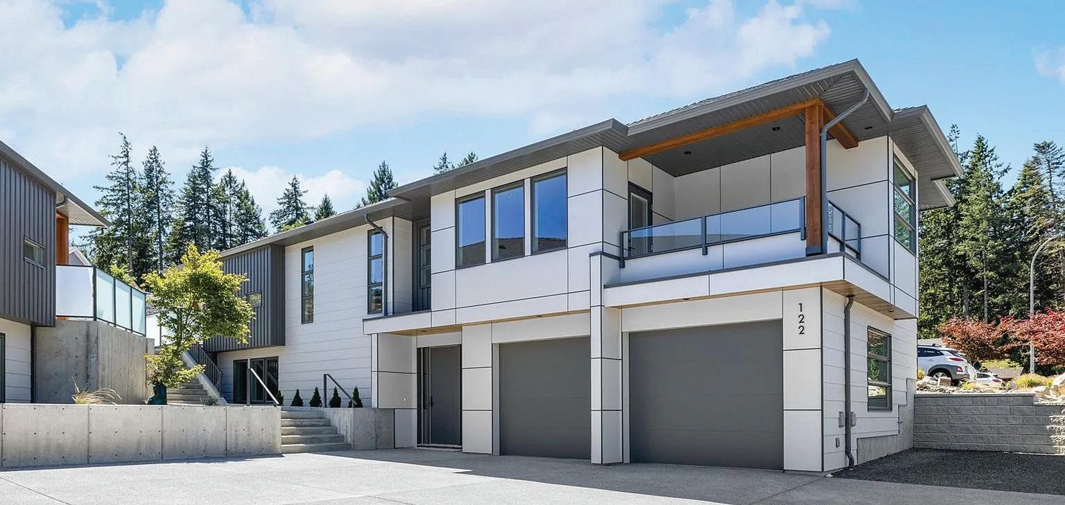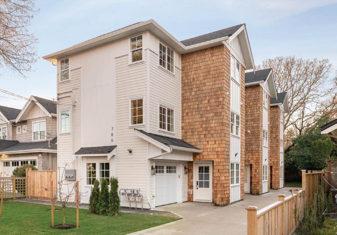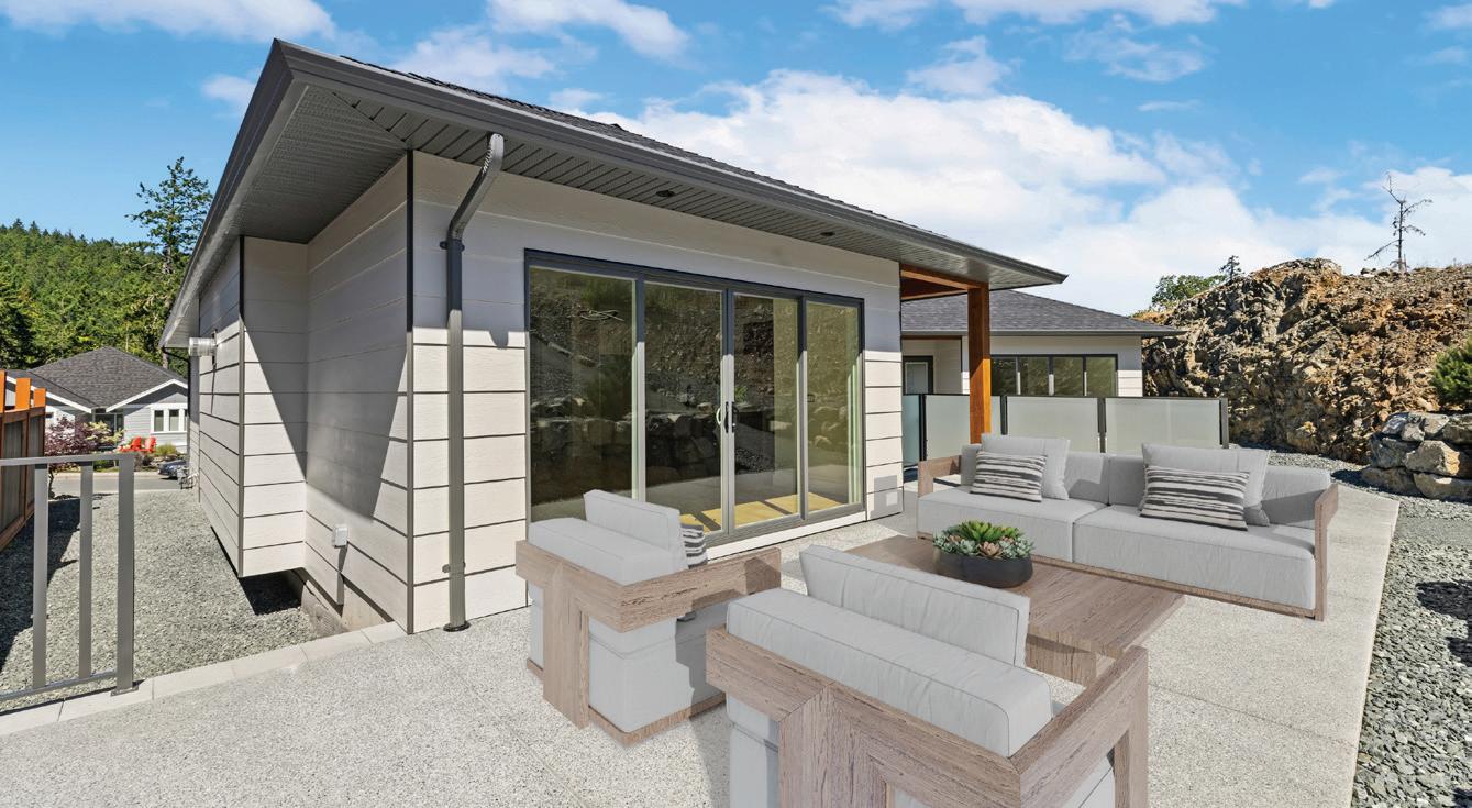 Elevated Living – A new release in The Heights, Langford’s boutique, controlled subdivision in desirable Olympic View. Our upcoming Grayson floor plan by award-winning Coastal Signature Homes offers 3,396 sq ft of modern West Coast contemporary design over three levels, roughed in for elevator. Built to BC Step Code 4 with energyefficient heating and cooling, HRV for continuous fresh air ventilation, and a dedicated mechanical room on the main level. Designed for multigenerational living, the main level features a 512 sq ft suite ideal for extended family. The middle level offers three bedrooms, including a primary suite with ensuite and walk-in closet, plus office and laundry. The upper floor is made for entertaining with a chef-inspired kitchen, large island, open-concept living and dining, and a second primary suite. A spacious double-car garage includes a dedicated EV charger outlet. Outdoor living takes centre stage with this southern exposure, private back yard with a partially covered grilling patio for the BBQ, expansive seating area, and low maintenance landscaping. The layout flows seamlessly from the home, creating a natural extension of the entertaining space. Estimated completion June 2026. Price PLUS GST.