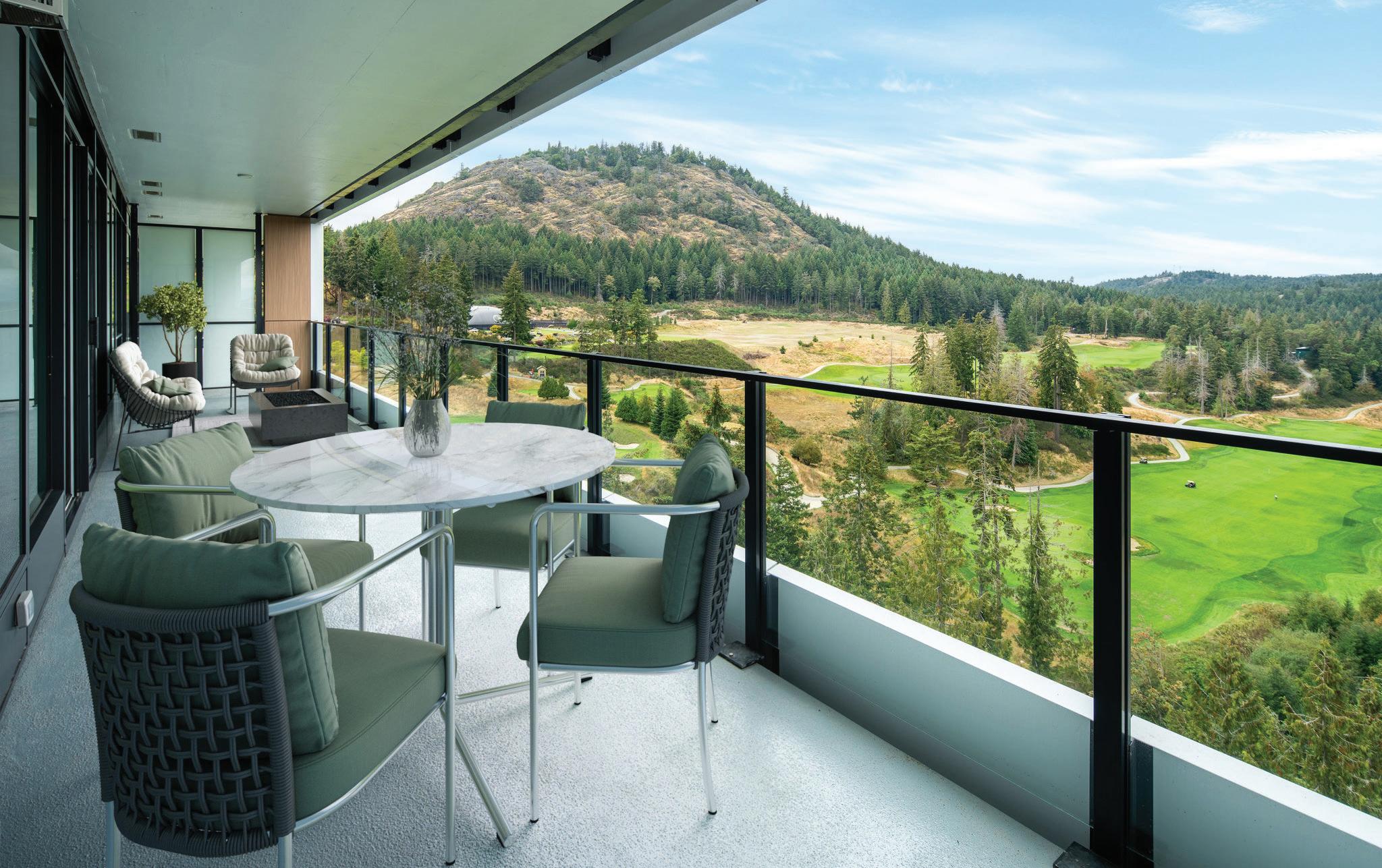 Set high on the 13th floor of One Bear Mountain, this impeccably curated two-bedroom plus den residence blends architectural refinement with sweeping views across the 18th fairway. Floor-to-ceiling windows and wide-plank hardwood floors frame approximately 1,150 sq ft of elegant living space, while an expansive 8’ x 40’ deck extends the home outdoors—ideal for quiet mornings and refined entertaining. The kitchen features Italian cabinetry, quartz countertops, and an integrated Bosch appliance package with gas cooktop and wall oven. The primary suite offers a custom walkin closet, spa-inspired ensuite, and direct deck access. Residents enjoy resort-level amenities including a 15th-floor infinity pool, fitness and yoga studios, and private dining spaces within one of Greater Victoria’s most distinguished lifestyle communities. https://1314onebearmountain.tarahearnstories.com/