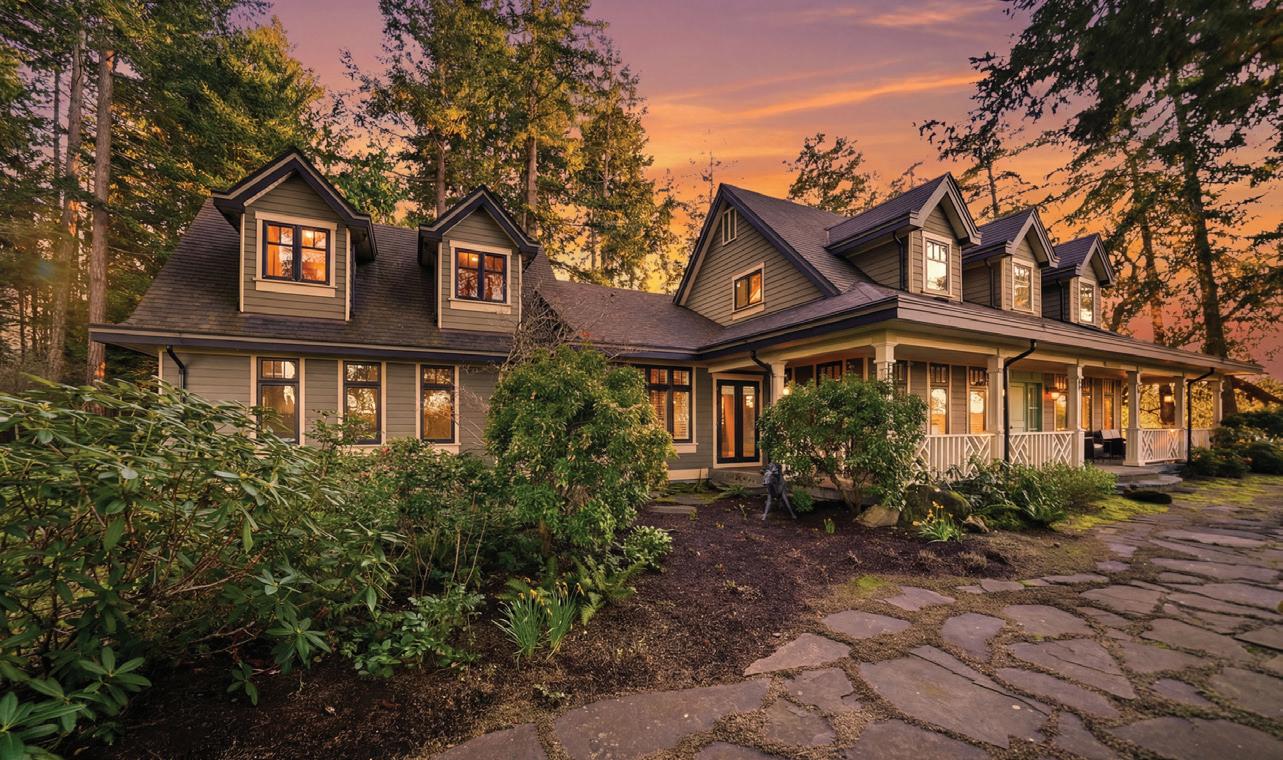 Resting on a scenic peninsula between Wall Beach and Northwest Bay, this stunning 4131 sq ft 4 Bed + Bonus Room/5 Bath Cape Cod–style home sits on a spectacular gated 4.83-acre estate. This exquisite seaside home boasts elegant finishes, stylish architectural detailing, skylights, and large windows for abundant natural light. The spacious layout includes formal Living and Dining Rooms, an open-plan Chef’s Kitchen and Family Room, a Gallery Hallway for showcasing artwork, a luxurious Primary Bedroom Suite, and an upper Bonus Room for guests. A south-facing Entertainer’s Deck provides the ideal spot for relaxation and dining, while the beautifully forested property features a bocce court with a Rec Room, as well as a trail to 1,200 ft of sandstone oceanfront with picturesque views of the Beachcomber Peninsula, the Strait of Georgia, and Wall Beach with Mt. Arrowsmith in the distance. The acreage offers the ultimate in privacy and tranquility—feeling light-years away from the hustle and bustle, yet just minutes from shopping, dining, and everyday amenities. Visit www.susanforrest.com for details.