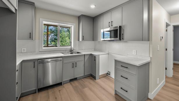 Welcome to The Heights, a boutique, controlled subdivision in Langford’s sought-after Olympic View. This move-in ready, newly completed 2,294 sq ft Hudson floor plan offers reverse living designed for modern, low-maintenance living. The upper level is perfect for entertaining, featuring a contemporary kitchen, open living and dining areas, natural light, and views toward Triangle Mountain. Downstairs includes three bedrooms and a family or media room with walk-out access to a private, fenced yard, while the primary bedroom opens to a covered patio. Highlights include a double garage with EV charger, durable vinyl flooring, modern lighting, and an energy-efficient heating and cooling system with HRV, built to STEP 4 BC Energy Code. Close to golf, trails, beaches, shopping, and a new elementary school across the street. Plus GST. New Home Warranty.
