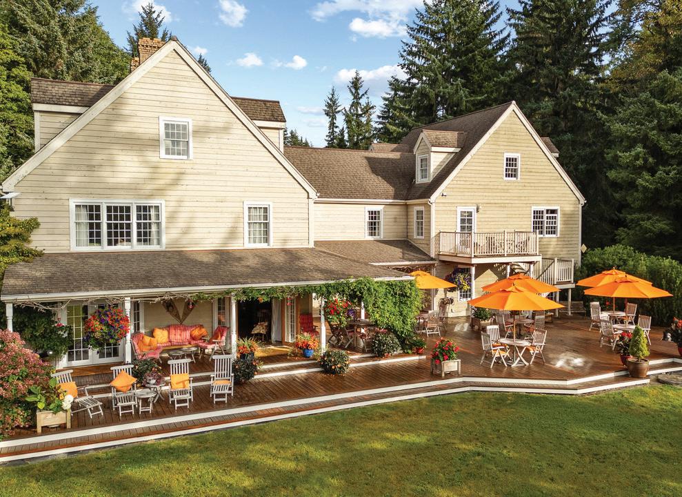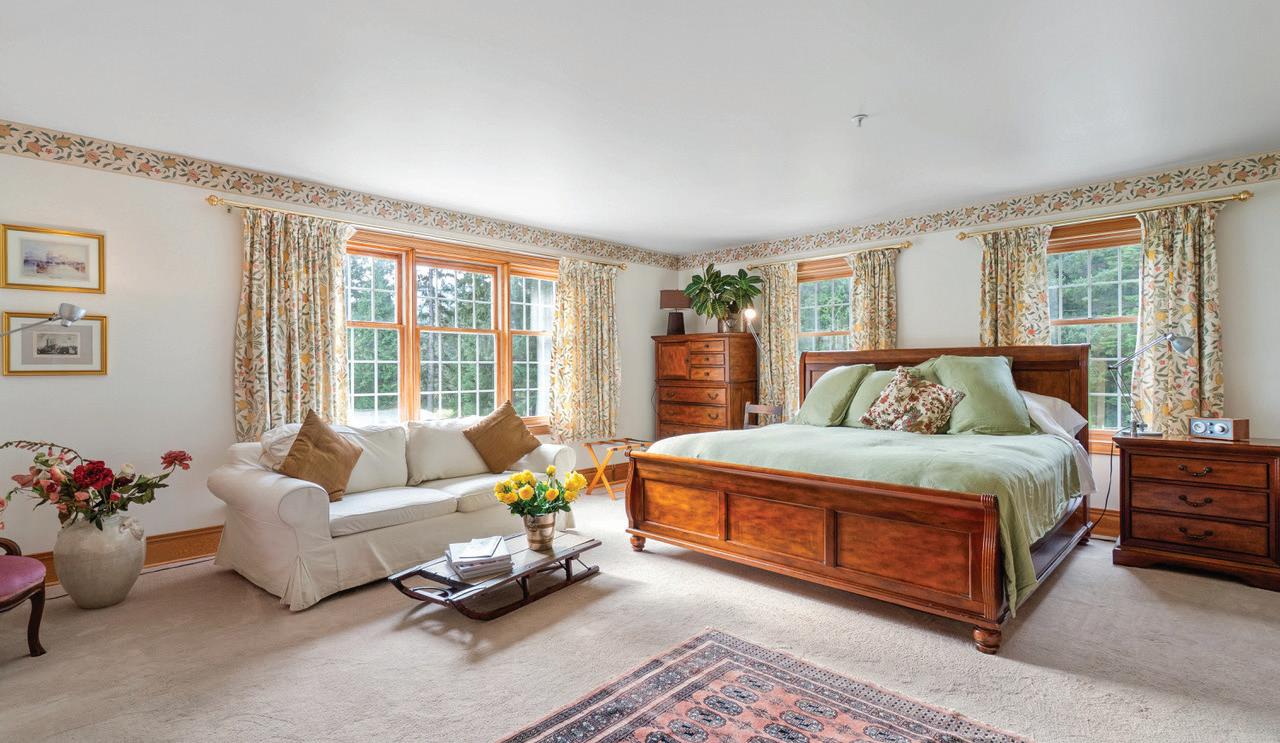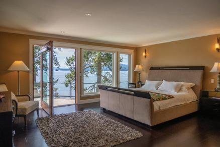 The lodge offers eleven bedrooms and seven bathrooms arranged across three levels, with interiors that recall a warm English manor house. Hand-finished fir flooring, open fireplaces, bespoke cabinetry, and carefully proportioned rooms create a sense of permanence and ease. An unfinished games room or meeting/conference space offers flexibility for entertaining, recreation, or corporate use, while a dedicated manager’s or caretaker’s suite supports longerterm stays and operational ease. StarLink is also in place for uninterrupted internet convenience. Verandas and terraces extend the living spaces outdoors, featuring a wood-fired hot tub and a separate fire pit/BBQ. A remarkable 2,700 square foot ocean-view deck provides an exceptional setting for entertaining, family gatherings, or quiet contemplation above the bay. Furnishings, fine linens sourced from London and New York, and feather-bedded accommodations reinforce a feeling of discreet luxury and turnkey readiness.