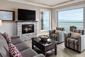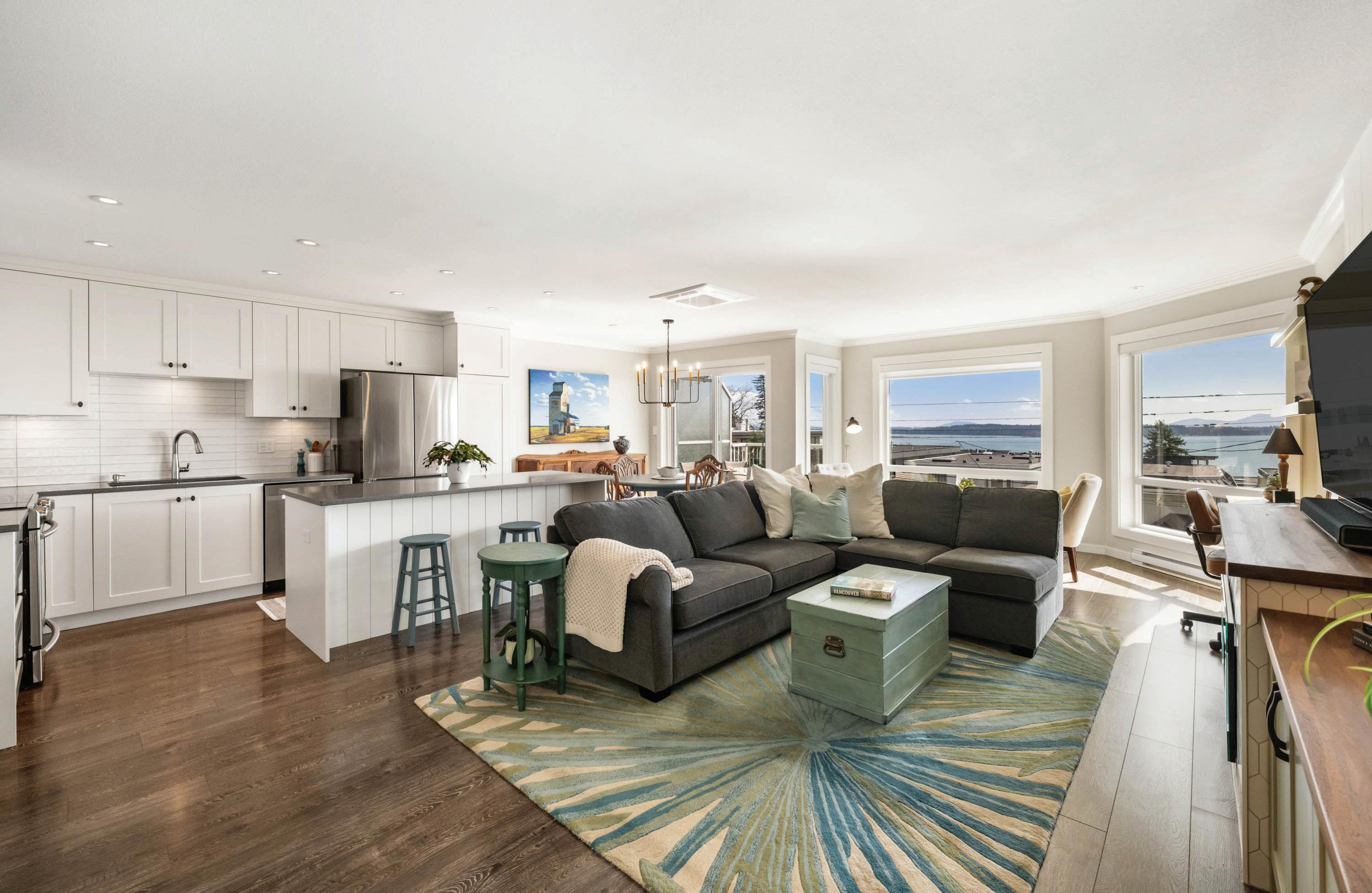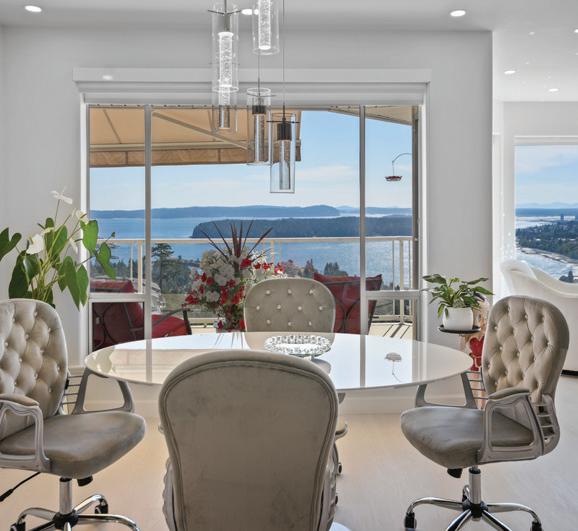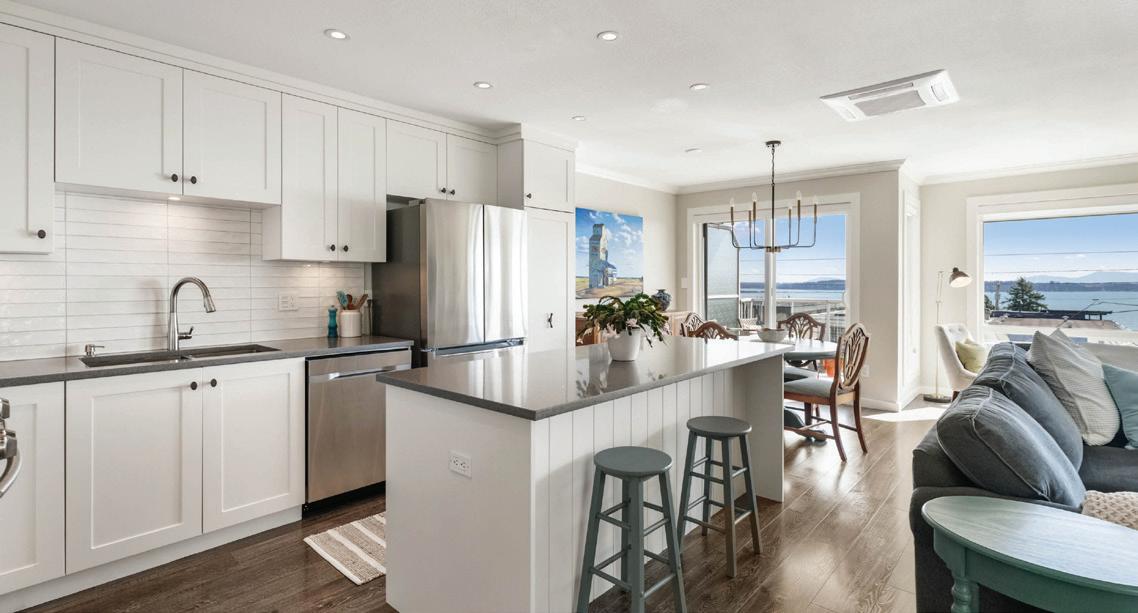 Wake up to panoramic views of Departure Bay, the coastal mountains, and Nanaimo in this fully renovated, high-end condo. Thoughtfully designed for easy living, it features two decks for morning coffee or evening sunsets, a chef’s kitchen with premium Miele appliances, and cozy fireplaces in both the living room and primary suite.