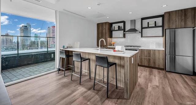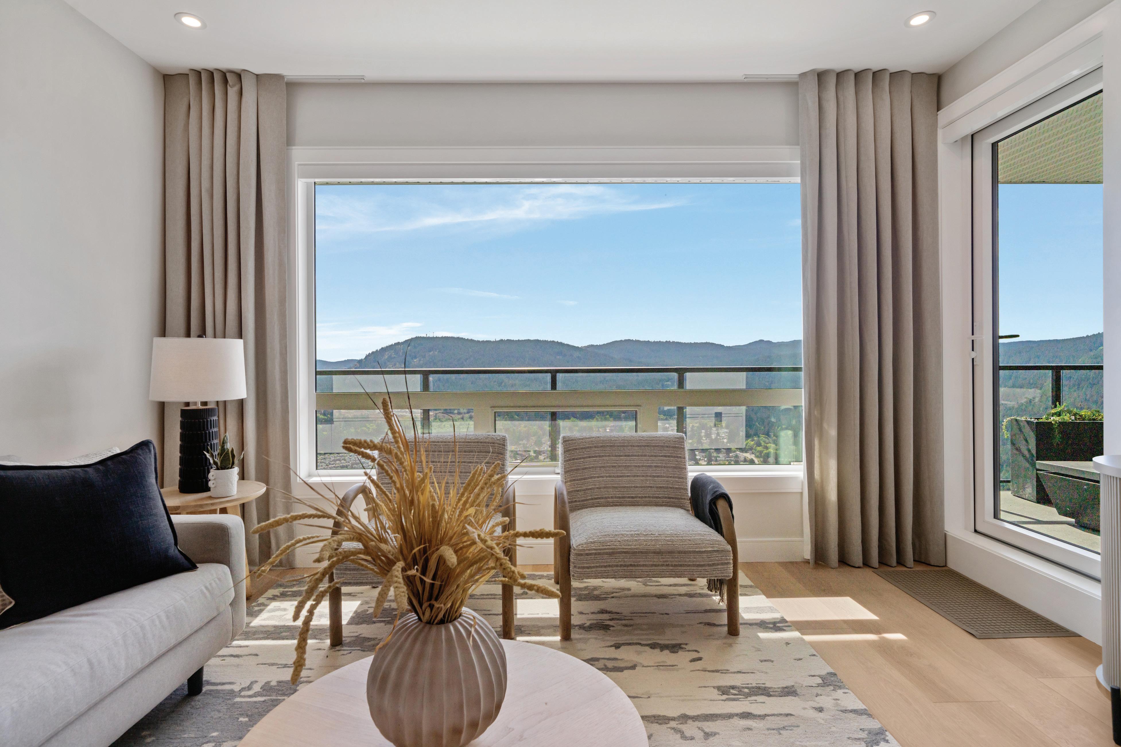 Elevated on the 11th floor, this 2 bed/2 bath home showcases sweeping panoramas of the city, ocean & mountains - enjoyed from both the expansive 179 sq. ft. balcony & the light-filled interior. Inside, luxury flows through an open-concept plan anchored by a chef’s kitchen with quartz island, gas range & custom cabinetryequally perfect for weeknight dinners or weekend entertaining. The primary suite feels like a private retreat with a walk-through closet & spa-inspired ensuite. A thoughtfully separated second bedroom & full bath create comfort & privacy for family, guests or dedicated office. Step outside to the Galloping Goose, cafés, dining & downtown. Pet-friendly, rental-friendly, and still under warranty. Built by BOSA Development.