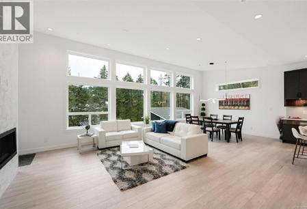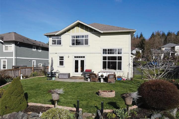 This beautifully updated Creekside home offers over 2,000 sq.ft. of stylish, functional living with 3 bedrooms and 3 bathrooms in one of Sunriver’s most desirable locations. The open-concept main level features a spacious great room with soaring 19’ ceilings, a cozy gas fireplace, and a welldesigned kitchen with island, adjacent to a bright dining area with coffered ceilings. Numerous upgrades include crown mouldings throughout and elegant granite window sills. French doors lead to a perfectly manicured, sun-drenched rear yard with many perennials and fruit trees - ideal for entertaining or relaxing while enjoying impressive views over the Sunriver development. Upstairs offers a versatile loft, generous bedrooms, and a well-appointed primary suite with walk-in closet and ensuite. Situated on a quiet cul-de-sac on the Victoria side of Sooke, this home provides easy access to the Westshore and downtown Victoria