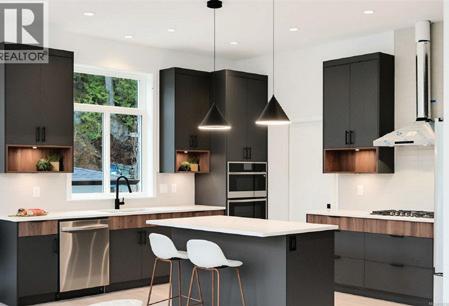 Brand New 4BD/4BA family home offering over 2,400 sq ft of refined living space, including a fully self-contained legal 1BR suite with separate hydro service. The gourmet kitchen features quartz counters and backsplash, shaker cabinetry, soft-close doors, premium SS appliances with a 6-burner gas range, and a large peninsula ideal for entertaining. A gas fireplace with tile surround and built-in cabinetry anchors the open-concept living area. The primary suite boasts a spa-inspired ensuite with quartz finishes, heated tile floors, and a walk-in closet. Step outside to your beautifully landscaped, fully irrigated backyard oasis with a covered stamped concrete patio, gas hookup, and two maple trees placed for added privacy. Comfort is assured year-round with a heat pump. Located in a quiet, family-friendly community just minutes from parks, trails, schools, beach access, and the shops and services of charming Brentwood Bay. MLS 1024612 | $1,425,000