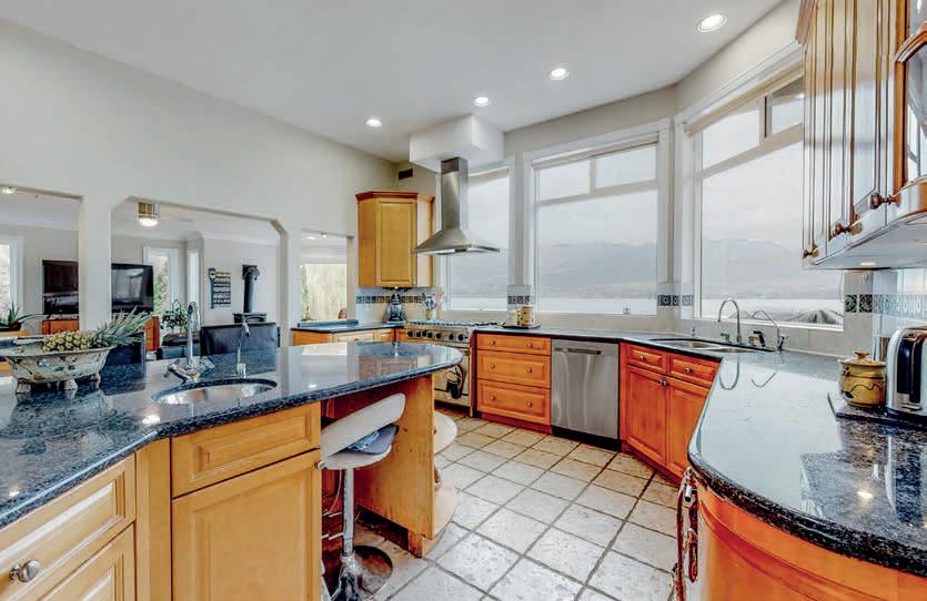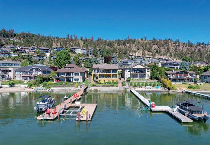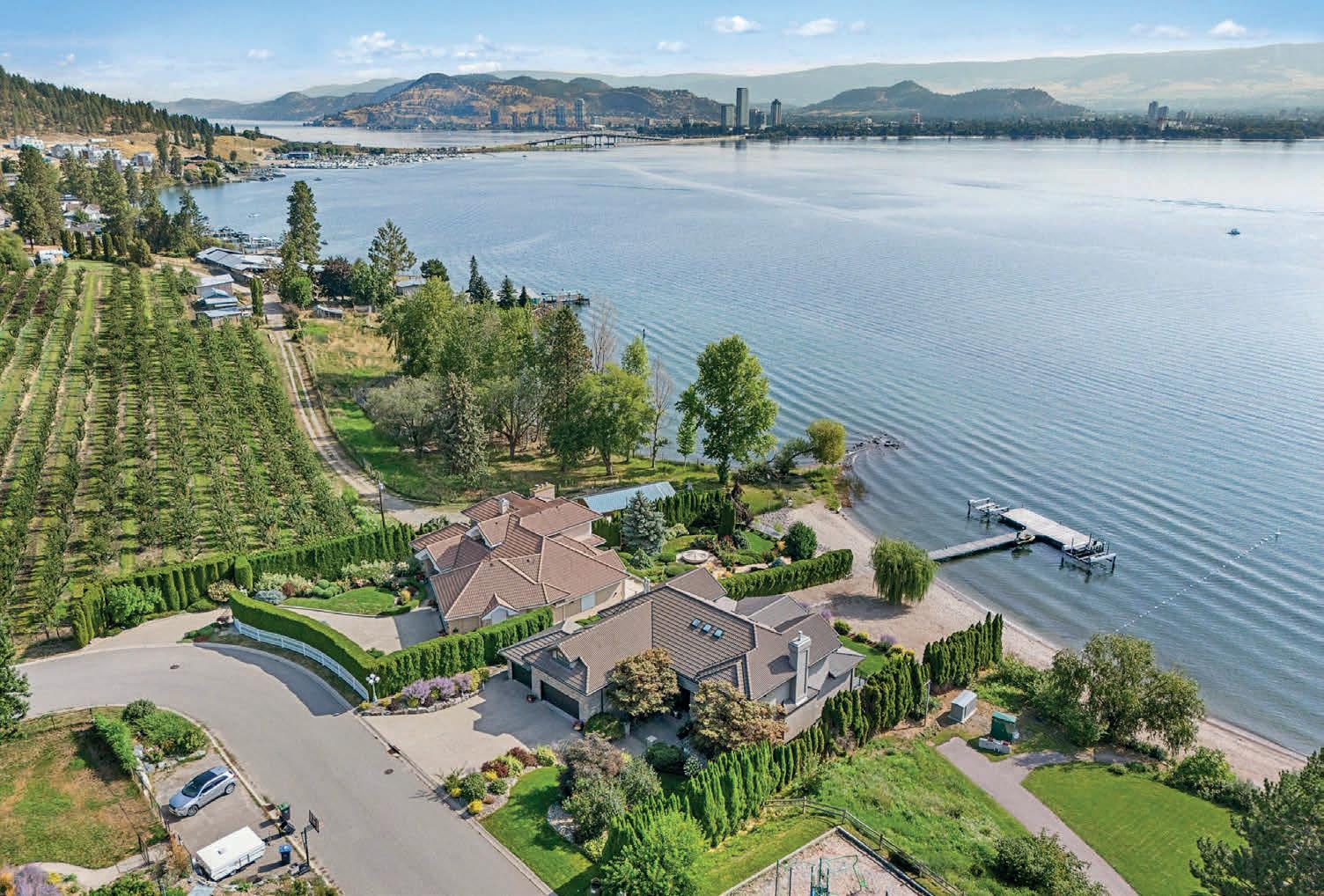 Nestled on a quiet cul-de-sac in a private waterfront setting, this beautiful customized residence offers a rare opportunity to experience tranquil living on the shores of Okanagan Lake. Surrounded by mature gently sloping grounds, the home blends refined design with a relaxed, resort-inspired lifestyle. Panoramic city and lake view and just minutes into town! A grand foyer with soaring ceilings, skylights and a graceful curved staircase welcomes you inside. The main living area unfolds beneath expansive windows and wall-to-wall Nano doors that open to the covered lakeside deck, creating seamless indoor-outdoor living just steps from the water. At the heart of the home, the chef’s kitchen featuring two islands, including a large L-shaped island with seating for seven, granite countertops, premium Thermador appliances and an oversized walk-in pantry. MLS® 10378795