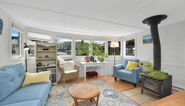 WEST COAST LIFESTYLE IN COWICHAN BAY. Discover the ideal weekend retreat or embrace year-round waterfront living in this quaint and cozy float home. Enjoy waking up to stunning panoramic ocean and mountain views from your bed or sip on your coffee in the open-concept main level, featuring a ‘’Home Chef’s’’ kitchen with island and a walk-in pantry. This home has been tastefully updated, including a refreshed bathroom with a new shower, bamboo vanity and sink. Durable laminate flooring flows throughout, offering both style and practicality. Upstairs, you’ll find two cozy bedrooms and a private sunroom that opens onto a deck and your own slice of outdoor serenity. New bilge pumps, dedicated parking, 220 power. ALL furnishings, linen, tableware and appliances INCLUDED!!! —just move in and start living the float home lifestyle. You’re just steps away from local shops, restaurants, and arguably the best bakery in the valley. Don’t miss your chance to be part of this amazing seaside community!