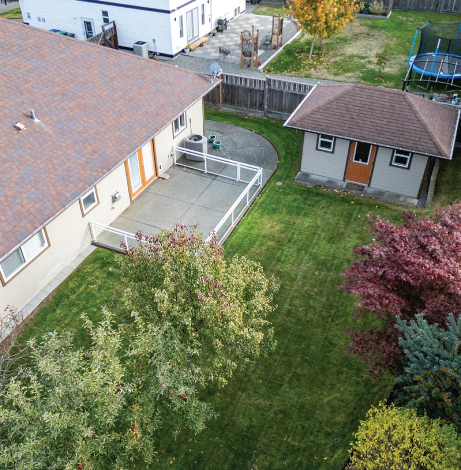 $930,000 | 3 BEDS | 2 BATHS | 1,850 SQ FT | Beautiful Comox rancher with double garage and exceptional storage. This spacious 1,850 sq. ft. rancher in a quiet Comox neighbourhood, just a short walk to nearby shopping. This well-designed home offers three bedrooms plus a den/ office—all on one convenient level. The interior features hardwood floors and maple shaker cabinetry, creating a warm and inviting atmosphere throughout. The open-concept kitchen and family room are perfect for entertaining, with a corner gas fireplace, French doors leading to the private back patio, and a separate island providing workspace and additional seating. Built-in cabinetry for ample storage, and privacy blinds are installed on all windows. The primary suite includes a walk-in closet and an ensuite with a walk-in shower. Two additional bedrooms are near the main four-piece bathroom. Practicality meets comfort with a heat pump for efficient year-round heating and cooling, hardi plank siding and a backyard shed for even more storage or workshop space.