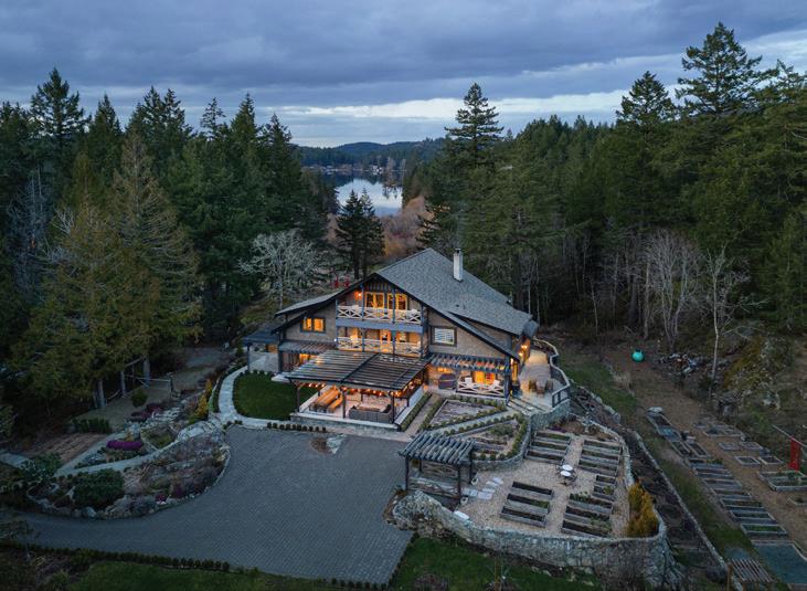 A private 17-acre West Coast lodge estate in Prospect Lake, just 20 minutes from downtown Victoria. Bella Farm is a once-in-a-generation offering blending timeless architecture with exceptional privacy, beauty, and flexibility. The 5,000+ sq ft residence is thoughtfully designed for multi-generational living, functioning as a gracious single home or adaptable into multiple private living areas for family, guests, or evolving lifestyle needs. Zoned A2 (Rural Residential – Two Dwelling), the property permits a second full-size residence, offering rare long-term value and legacy potential. The grounds feature established gardens, orchards, terraced landscapes, and irrigation supporting a self-sustaining lifestyle. Detached studio buildings add versatility for creative, wellness, or professional use. Bella Farm may be offered fully furnished for an effortless transition. MLS 1025542
