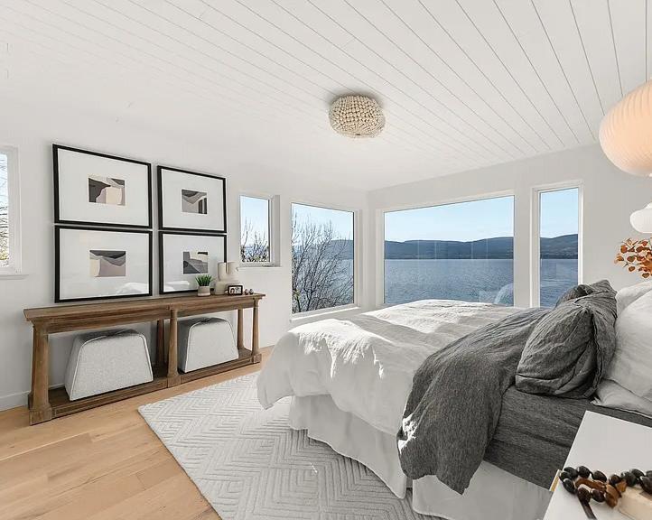 Set along the shoreline of Okanagan Lake, this exquisitely renovated waterfront residence offers a lifestyle defined by design and natural beauty. Professionally curated throughout, the home features vaulted ceilings, wood beam accents, and expansive windows framing panoramic lake views. The chef-inspired kitchen anchors the open-concept main level, while the primary suite offers a spa-like retreat. A walk-out lower level with games area, media room, and infrared sauna enhances the experience. Outdoors, multiple patios, hot tub, and direct lake access complete this refined lakefront setting. MLS®10379821