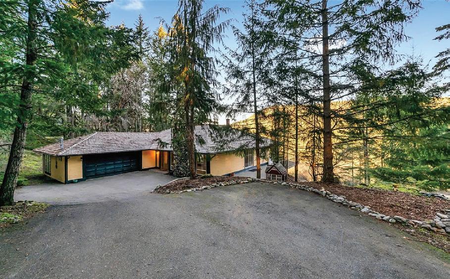 A rare and refined offering of exceptional privacy with sweeping mountain and lake views, set on an exclusive 2-acre property close to everyday amenities. This updated mid-century rancher features vaulted ceilings and an open-concept design. The well-planned layout includes 3 BRs, anchored by a serene primary suite overlooking the gardens, plus a sun-filled family room ideal for a studio or a future suite. Outdoor living spaces include an elevated gazebo, offering a striking setting for entertaining and sunset views. The grounds are beautifully established with mature Japanese maples, roses, and fruit trees, complemented by a greenhouse, irrigation, and potter’s shed. Recent improvements include a brand-new kitchen and en-suite, 2 updated bathrooms, and fresh interior paint throughout. A heat pump with A/C ensures year-round comfort. A workshop and flexible office, gym, or hobby space complete this distinguished 1-level residence. MLS 1024545 | $1,649,900