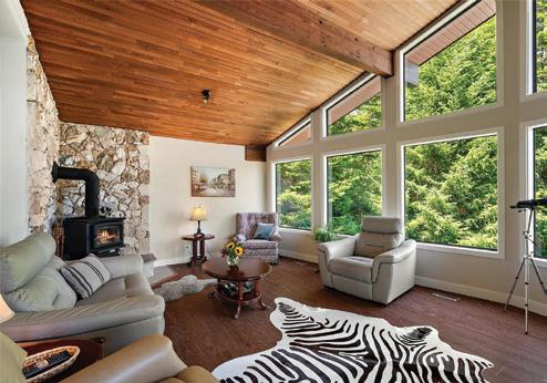 Step outside and the lifestyle unfolds. The expansive wraparound sundeck, level yard, and natural landscaping of rock, moss, and native plantings create a setting that feels both curated and completely at ease with nature. A separate ocean-side studio/office offers the perfect space for creativity, work, or quiet reflection, always with the sea in your view.