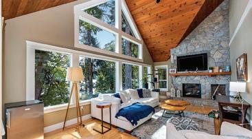 Inside, the home is filled with natural light, anchored by an expansive great room with soaring ceilings and floor-to-ceiling windows that draw the outdoors in year-round. The design is both relaxed and sophisticated, with light wood floors and beams, custom millwork, and a seamless connection to the surrounding landscape.