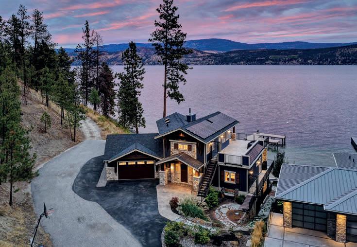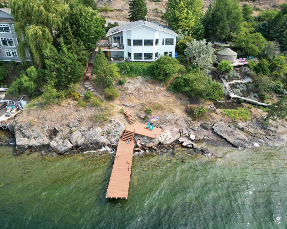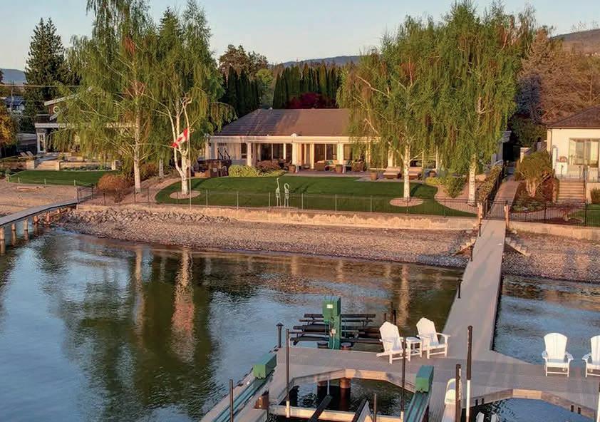 120 ft. of pristine shoreline and some of the best sand in the valley, both on shore and beneath the water. This exquisite, turn-key home captures the essence of lakeside luxury, offering panoramic views, timeless architecture, and a relaxed sophisticated style throughout. Inside, the open-concept main level showcases soaring vaulted ceilings, exposed beams, and a stunning limestone fireplace that anchors the great room. Designed for entertaining, this property features a theatre with leather recliners, multiple tiered patios that lead to the beach, new private dock, and charming treehouse. Complete with solar panels, two-car garage with expoxy finish, and resort-style outdoor spaces, this residence defines refined Okanagan lakefront living. MLS® 10366694
