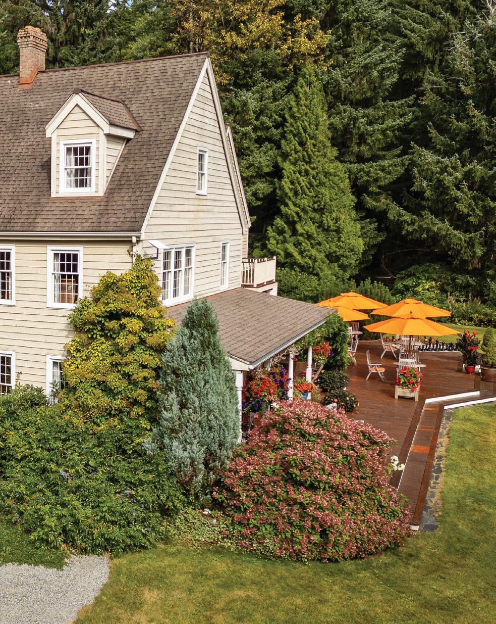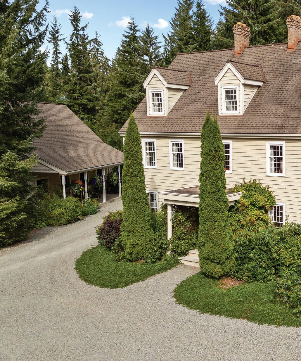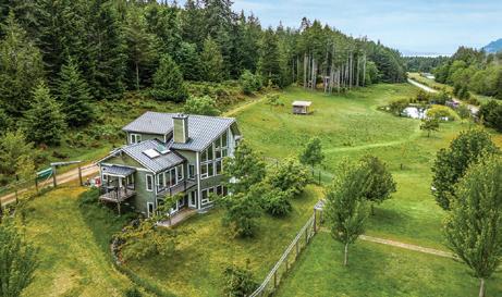 dramatic coastal mountain backdrop of Douglas Channel. The grounds are rich and intimate: salmon-spawning creeks crossed by suspension bridges, forest walking trails, mature plantings, a creekside orchard, and a bee yard for the production of estate honey, all framed by native wilderness. Privacy is absolute, bordered by municipal parkland and protected Haisla lands, yet the property remains deeply connected to the surrounding coastal environment and culture—Kitamaat meaning “People of the Snow” in the Haisla language.