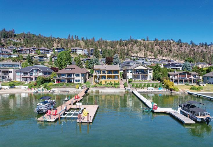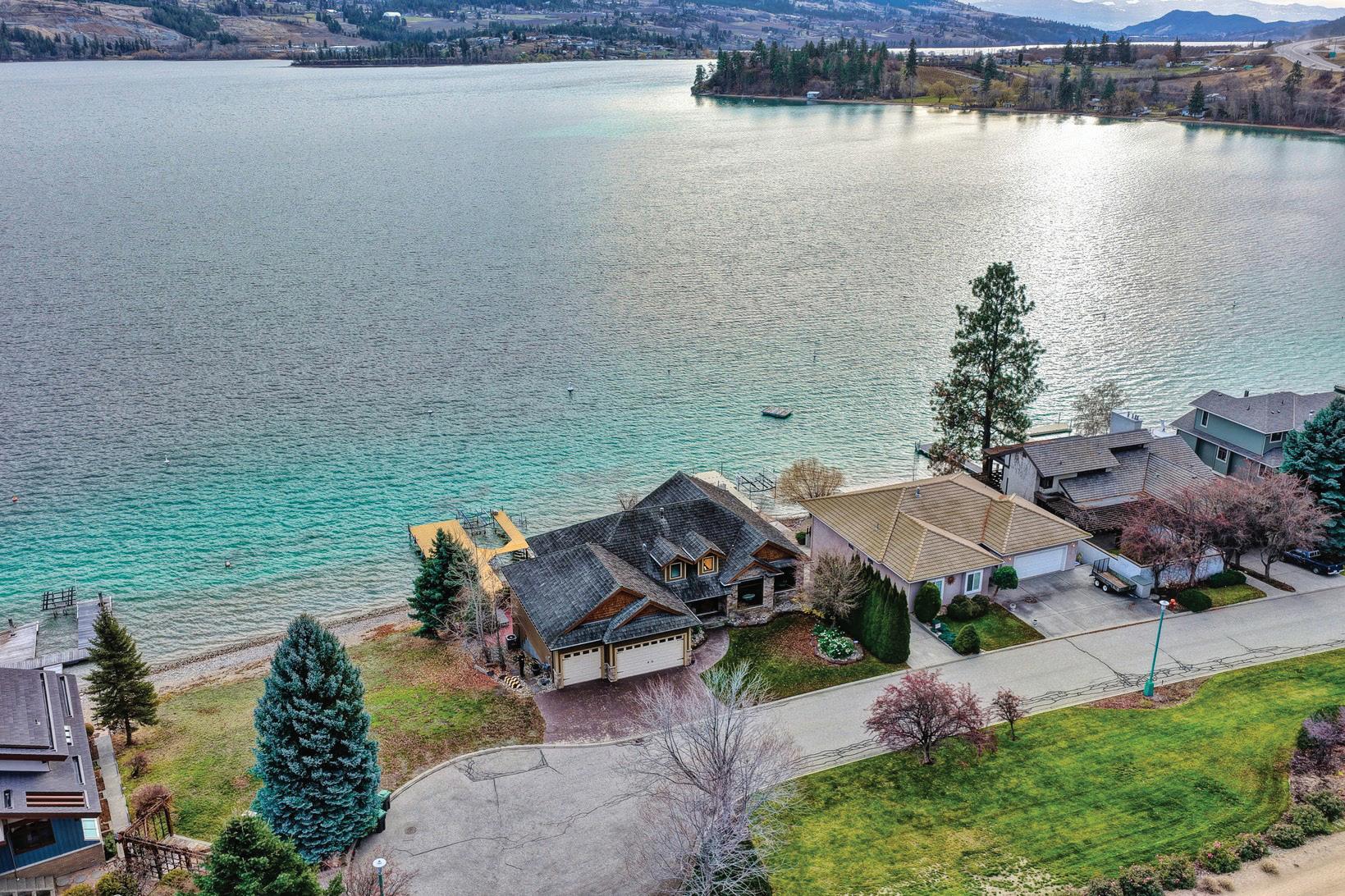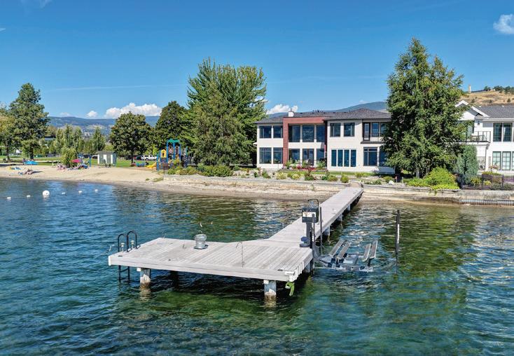 ft of level beachfront, mature landscaping, and a shared dock with boat and Seadoo lifts. The 3,600+ sq. ft. rancher features 3 bedrooms, 3 baths, plus a detached 1-bed, 1-bath guest casita. Designed for seamless indoor–outdoor living, floor-to-ceiling sliding doors capture stunning lake views throughout. The gourmet kitchen boasts custom cabinetry, expansive counters, professional-grade appliances, dual dishwashers, and a breakfast nook with patio access. The primary suite offers patio access, a spa-inspired ensuite, and a walk-in closet with skylight and center island. Outdoor living includes a lakeside patio with built-in BBQ, heaters, and ceiling fan. Additional highlights: triple garage, heated floors, smart home features, and private hot tub—minutes to downtown, wineries, and golf. MLS® 10364601