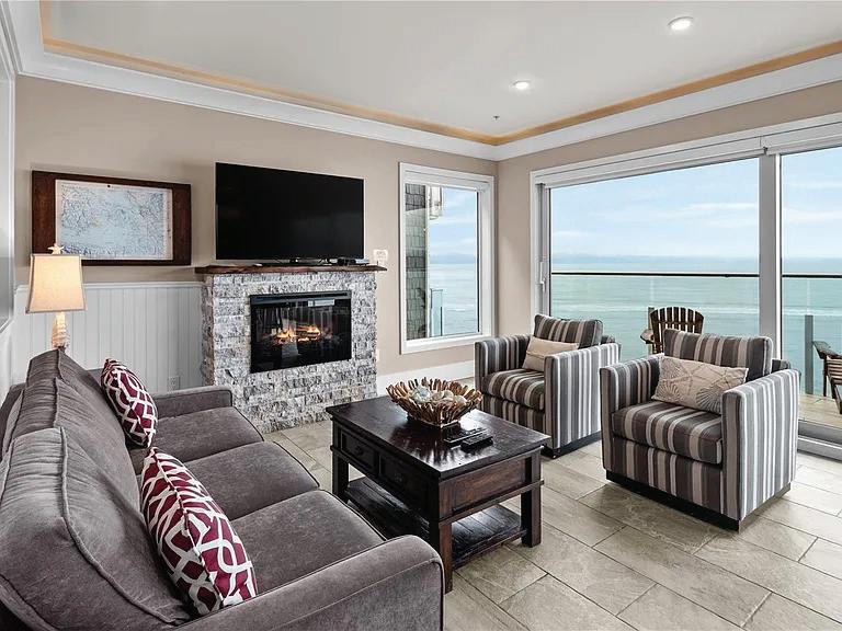 Wake up to panoramic views of Departure Bay, the coastal mountains, and Nanaimo in this fully renovated, high-end condo. Thoughtfully designed for easy living, it features two decks for morning coffee or evening sunsets, a chef’s kitchen with premium Miele appliances, and cozy fireplaces in both the living room and primary suite. The spa-inspired ensuite with heated floors, soaker tub, and separate shower creates a private retreat, while smart comforts like automated sunshades, car charger readiness, and a 2019 heat pump/furnace make daily life effortless. With 2 bedrooms, 3 bathrooms, and plenty of flexible living space, this home offers a perfect balance of comfort, convenience, and everyday luxury.