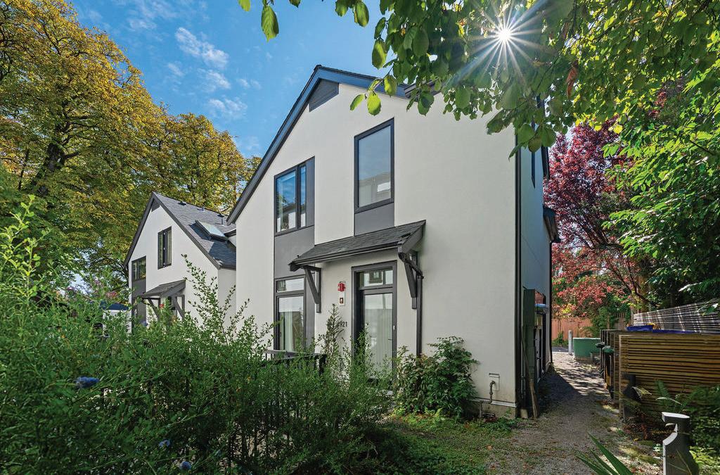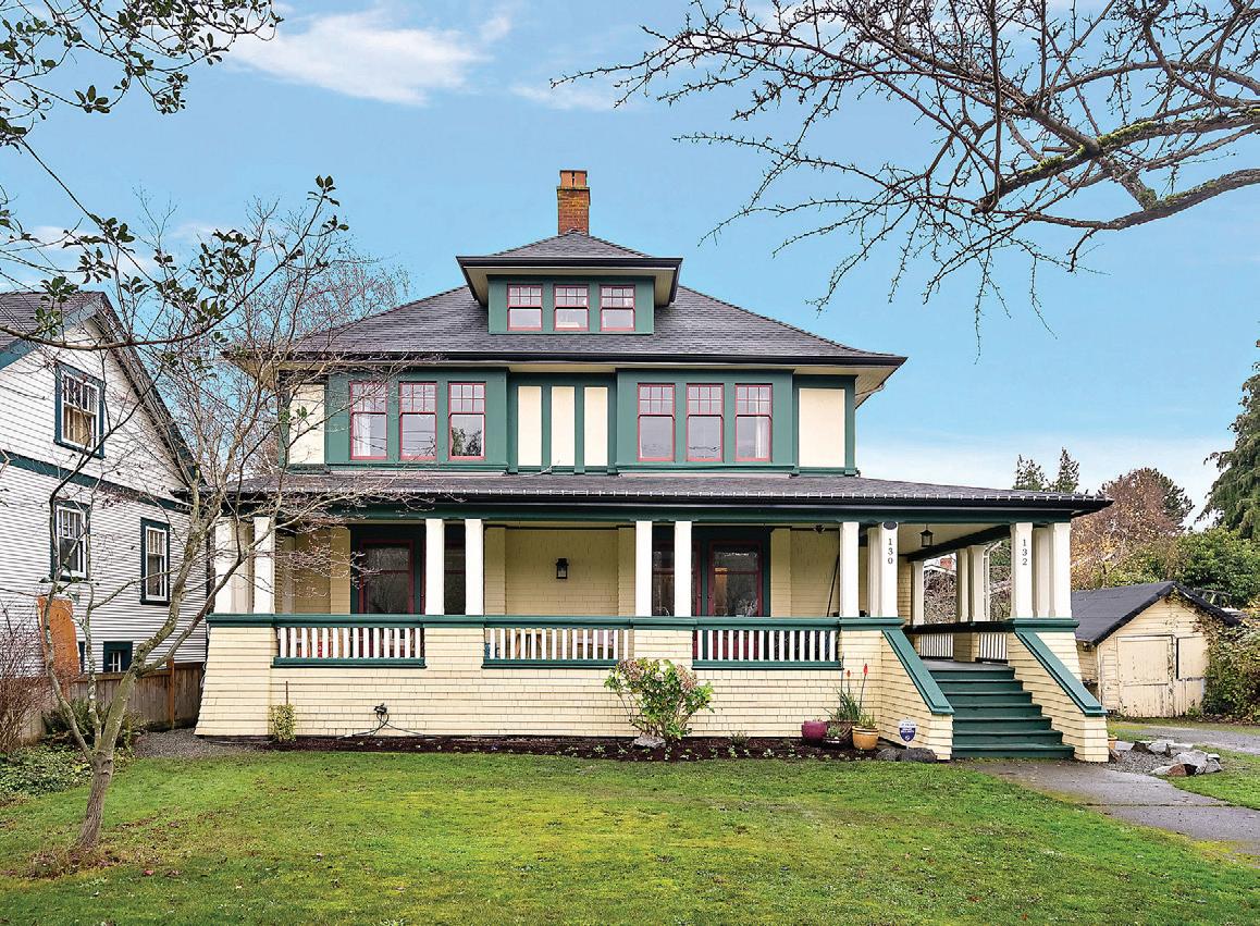For Bachman, representing such a property is not simply a transaction, but a responsibility. Located on a quiet, tree-lined street in James Bay, Victoria, the Claremont Estate exemplifies Maclure’s Edwardian Foursquare design. Its classic shingled façade, bell-cast hipped roof, and wraparound balcony create a stately yet inviting presence. Inside, original fir floors, hand-crafted woodwork, stained glass, French doors, and four tiled fireplaces showcase the enduring quality of Maclure’s vision. Professionally converted into a legal duplex in 1934, with the addition of a rare attic great-room suite, the residence now offers over 4,000 square feet of flexible living space.