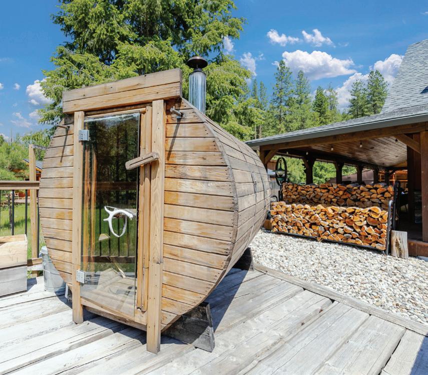 The lodge offers eleven bedrooms and seven bathrooms arranged across three levels, with interiors that recall a warm English manor house. Hand-finished fir flooring, open fireplaces, bespoke cabinetry, and carefully proportioned rooms create a sense of permanence and ease. An unfinished games room or meeting/conference space offers flexibility for entertaining, recreation, or corporate use, while a dedicated manager’s or caretaker’s suite supports longerterm stays and operational ease. StarLink is also in place for uninterrupted internet convenience. Verandas and terraces extend the living spaces outdoors, featuring a wood-fired hot tub and a separate fire pit/BBQ. A remarkable 2,700 square foot ocean-view deck provides an exceptional setting for entertaining, family gatherings, or quiet contemplation above the bay. Furnishings, fine linens sourced from London and New York, and feather-bedded accommodations reinforce a feeling of discreet luxury and turnkey readiness.