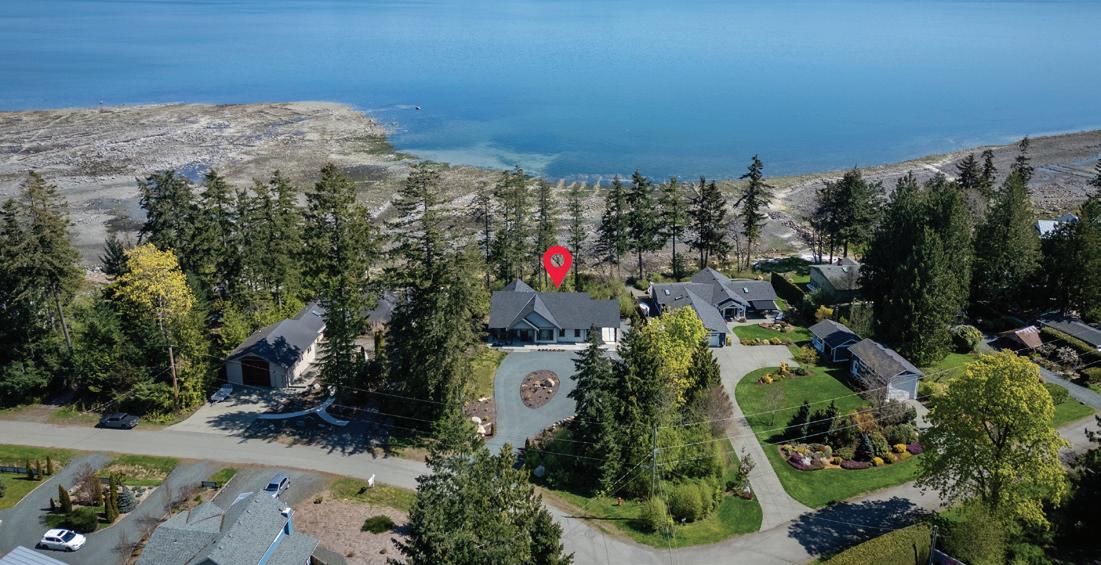 $2,195,000 | 3 BEDS | 3 BATHS | 3,443 SQ FT | This stunning newly built walk-on waterfront home is located on the peaceful Ships Point Peninsula. Set on 0.57 acre with 90’ of ocean frontage, this home offers modern elegance with white oak floors, Thermador/Wolf appliances and custom cabinetry. The open-concept living area features a striking Napoleon fireplace, but it’s the panoramic ocean views—framed by expansive wall-to-wall windows—that will truly take your breath away. Step out to a spacious deck, perfect for al fresco dining or simply soaking in the ever-changing views of herons and eagles with Denman Island in the distance.