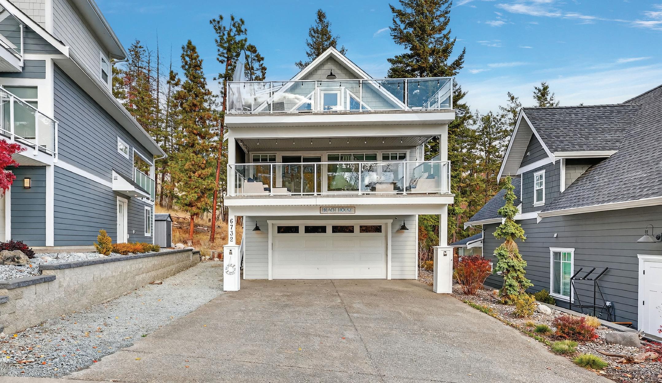 Welcome to The Lake House, a masterfully crafted waterfront retreat on Okanagan Lake by award-winning SanMarc Homes. This contemporary residence blends timeless materials with modern sophistication—white-washed wood, exposed brick, custom lighting, dark granite, and metal accents create effortless lakeside elegance. The open-concept main level showcases panoramic views through expansive glass, anchored by a chef’s kitchen with a striking island, professional appliances, and a wine display alcove. The main-floor primary suite offers lake views, a spa-inspired ensuite, and a custom walk-in closet. Upstairs, a rec room with wet bar connects two lakeview bedrooms with private patios. A premier dock system and three-car garage complete this exceptional lakeside offering near top wineries and trails. MLS® 10367241