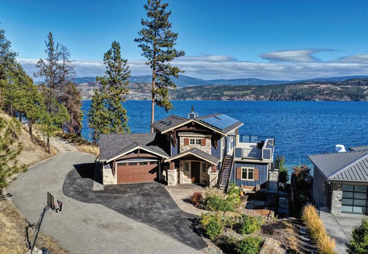 120 ft. of pristine shoreline and some of the best sand in the valley, both on shore and beneath the water. This exquisite, turn-key home captures the essence of lakeside luxury, offering panoramic views, timeless architecture, and a relaxed sophisticated style throughout. Inside, the open-concept main level showcases soaring vaulted ceilings, exposed beams, and a stunning limestone fireplace that anchors the great room. Designed for entertaining, this property features a theatre with leather recliners, multiple tiered patios that lead to the beach, new private dock, and charming treehouse. Complete with solar panels, two-car garage with expoxy finish, and resort-style outdoor spaces, this residence defines refined Okanagan lakefront living. MLS® 10366694