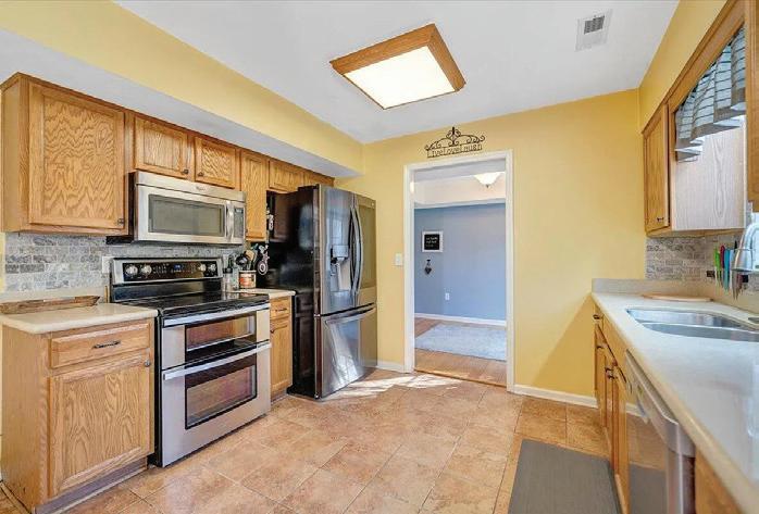 Situated on a corner lot, this charming ranch-style home offers comfort, convenience, and timeless appeal. Built in 1965 and well maintained, it blends classic design with modern updates for easy living. Step inside to a traditional floor plan featuring a spacious living room with beautiful wood floors and abundant natural light—perfect for relaxing or entertaining. The newly renovated kitchen is the heart of the home, equipped with one-year-old appliances including an electric range, refrigerator, dishwasher, and icemaker, making everyday cooking and hosting effortless. The home features three generously sized bedrooms, providing flexibility for guests or a home office, along with a full bath and convenient half bath. A full walkout basement with interior and exterior access offers endless potential for additional living space, recreation, or storage. Outdoors, enjoy beautifully landscaped grounds that enhance curb appeal and provide a peaceful setting. An attached carport, asphalt driveway, and on-street parking offer ample space for vehicles. A security system adds peace of mind. This inviting ranch-style home delivers classic charm, thoughtful updates, and a welcoming atmosphere—an exceptional opportunity to enjoy comfortable, stylish living.