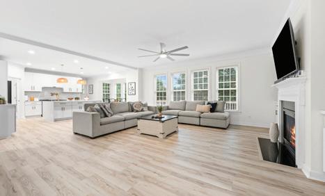 This 2,485 sq ft home offers 3 bedrooms and 2.5 baths, including a first-level master suite with a 5’ shower and walk-in closet. Features include vaulted living room ceilings, a large family room over the garage, a sunroom, loft, separate laundry room, and both a covered front porch and rear screened porch. The home also provides a dual-zone HVAC system, conditioned crawlspace, included appliances, and allowances for foundation, cabinetry, flooring, lighting, septic, and more, with an optional gas fireplace available.