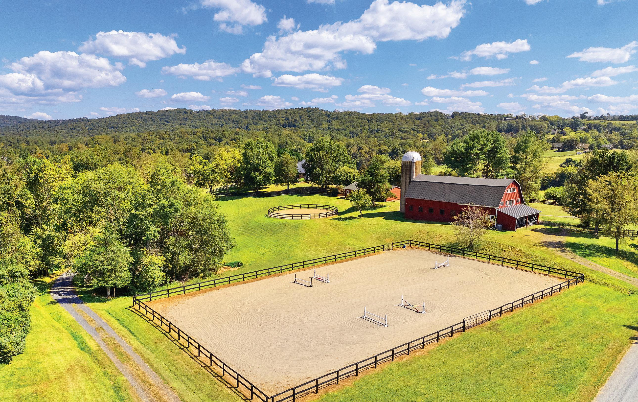 Marshall, VA – Turnkey horse farm in Bellevue Farms, a premier equestrian community with 30+ miles of riding trails. Custom 7,700+ sq. ft. stone home with 5 bedrooms and 7 baths combines elegant living with practical equestrian design. 1 bedroom cottage and 1 bedroom barn apartment for multigenerational living or rental. Equestrian features: 4-stall barn with tack room, wash rack, feed room, and office. 2 paddocks, round pen, and riding ring. Detached 3-car garage. Just 15 minutes to I-66 and Marshall, and 10 minutes to Warrenton. 2 Parcels.