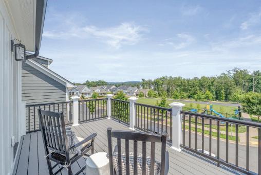 from the 10x16 primary bedroom deck of this exquisite new construction home. Gibson Homes presents this just completed home with a cool color palate, stunning finishes and sited on a corner lot, the generous space throughout lives large. 10 ft ceilings on the 1st floor, true finished in place hardwood floors, natural gas fireplace with shiplap surround, great room coffered ceiling, Viking appliances in a chef’s dream kitchen complete with a porcelain farm sink, prep sink and pot filler, custom cubbies, custom builtins, solid core doors, wood closet shelving, custom tile work....you may have found your forever home. Along with the primary bedroom, on the 2nd floor find an en-suite bedroom and a jack and jill bedroom ensemble. A large 2nd floor laundry room completes the space. Wonderful entertaining area on the rear oversized stamped concrete patio! The detached 2 car garage with finished carriage house above can be rented or can be a perfect au pair suite, mother in-law apartment or private office.