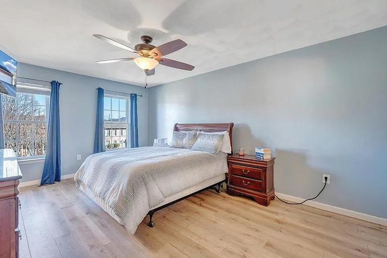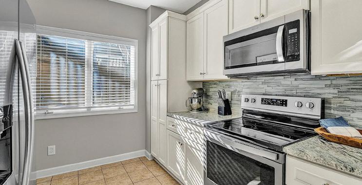 Gorgeous end-unit condo in Hickory Manor offering modern updates and low-maintenance living! The first floor features a welcoming open layout with great natural light, a comfortable living/dining area, and direct access to a private patio. The kitchen is a standout with quartz counters, stainless steel appliances, white cabinetry, and an island perfect for everyday use or entertaining. The primary suite is conveniently located on the main level and includes a custom walk-in closet and a beautifully updated full bath. Upstairs are two generously sized bedrooms—each with impressive walkin closets and built-in storage, making organization effortless.