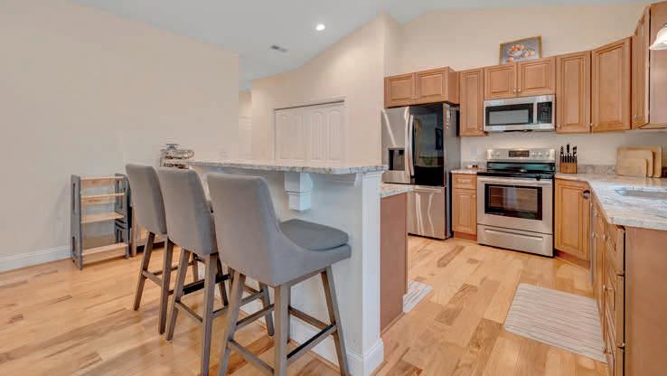 Tucked at the end of an serene cul-de-sac, this refined 3-bedroom, 2-bath residence exudes understated luxury and modern elegance. Warm oak floors sweep through sunlit spaces, while vaulted ceilings and expansive tilt-in windows elevate the home’s airy, architectural presence. At the heart of the home lies a gorgeous kitchen, where gleaming granite surfaces, stainless steel appliances, and a sophisticated central island create a stage for both culinary artistry and effortless gatherings. The adjoining family room offers a dramatic yet inviting escape, centered around a stunning stone-surround gas fireplace that brings sculptural beauty and ambiance to the space. The primary suite is a serene retreat, thoughtfully designed with dual closets and an en-suite bath featuring an oversized, walk-in shower crafted for indulgent relaxation. The additional bath continues the sense of refinement with a deep soaking tub and spacious shower—perfect for unwinding in style. A central vac system enhances daily convenience, while the HOA provides elevated ease of living by covering mowing, snow removal, and street lighting. This desirable neighborhood also offers a clubhouse that is available for entertaining.