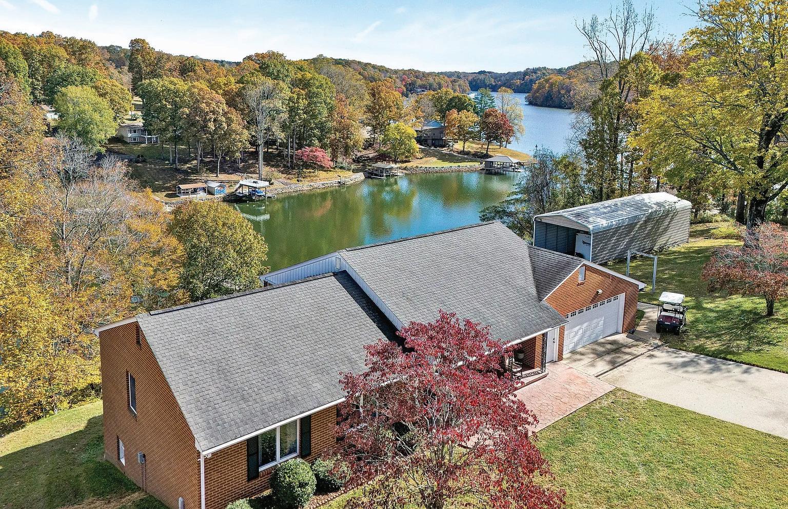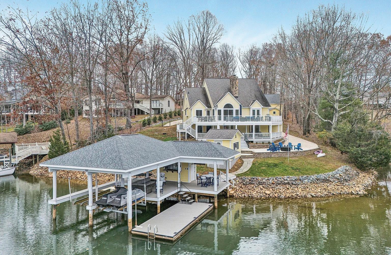 Beautiful all-brick lakefront home with 262’ of shoreline on Smith Mountain Lake, designed for enjoying the lake lifestyle year-round. Approx. 3,500 SF offering stunning water views, a rocking-chair front porch, lake side screened porch, and multiple decks and patios ideal for relaxing or entertaining. The dock features three covered slips, sundeck, and storage. Detached 3-car garage/workshop, RV carport, and golf cart path to the lake. https://showsgreat.photography/2228-Thomason-Ln