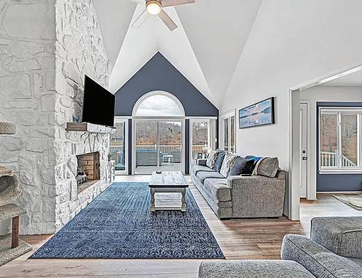 Bluemont, VA – Charming stone residence built in 1939 for Wing Agnew, superintendent for the U.S. Bureau of Mines, and located within the Bear’s Den Rural Historic District. Inside find 3 bedrooms, 3.5 baths, light-filled rooms, hardwood floors, and a striking stone fireplace. Eastern valley views. Outdoors find a fire pit, 1-car and 3-car garages, and mature gardens. Starlink internet available. Original character, cozy rooms, whispering poplars, and the kind of peaceful privacy that can only be found on the mountain.