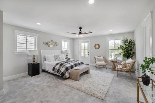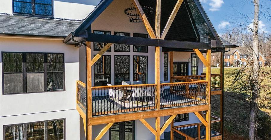 from the 10x16 primary bedroom deck of this exquisite new construction home. Gibson Homes presents this just completed home with a cool color palate, stunning finishes and sited on a corner lot, the generous space throughout lives large. 10 ft ceilings on the 1st floor, true finished in place hardwood floors, natural gas fireplace with shiplap surround, great room coffered ceiling, Viking appliances in a chef’s dream kitchen complete with a porcelain farm sink, prep sink and pot filler, custom cubbies, custom builtins, solid core doors, wood closet shelving, custom tile work....you may have found your forever home. Along with the primary bedroom, on the 2nd floor find an en-suite bedroom and a jack and jill bedroom ensemble. A large 2nd floor laundry room completes the space. Wonderful entertaining area on the rear oversized stamped concrete patio! The detached 2 car garage with finished carriage house above can be rented or can be a perfect au pair suite, mother in-law apartment or private office.