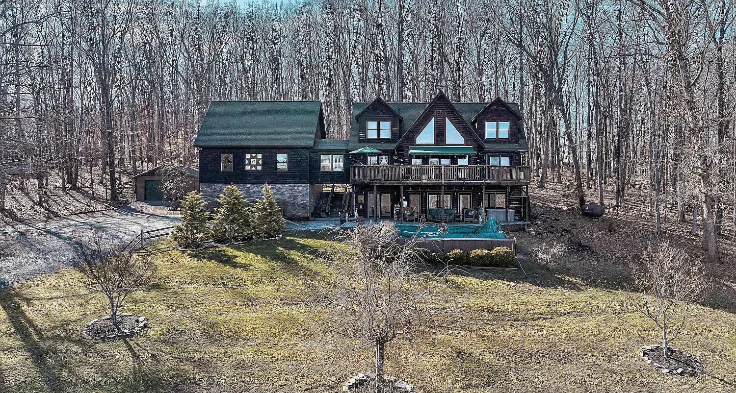 Custom Log Home Living on 8+ Acres. Perfectly situated on 8.10 sprawling acres, this custom-built Southland Log Home offers a rare combination of serene views and refined craftsmanship. Designed to harmonize with its natural surroundings, the residence features an inviting open-concept floor plan characterized by soaring cathedral ceilings, rich hardwood flooring, and expansive walls of windows that flood the home with natural light. The gourmet kitchen serves as the heart of the home, boasting sleek updated granite countertops, a gas range and convection oven, double ovens, pantry, and breakfast bar. The space flows effortlessly into the dining area and great room, and out to the home’s premier outdoor living spaces--including a front deck with retractable awning overlooking a tranquil pond and a private covered rear deck perfect for morning coffee. The main level is completed by a versatile office, large laundry room with utility sink, guest bath, and striking breezeway leading to a generous family room with a cozy gas fireplace. Retreat to the private upper-level primary suite, a sanctuary featuring hardwood floors and a spa-like ensuite with rustic barn doors, Jacuzzi tub, and double vanities. Two additional guest rooms and full bath. Breezeway between the bedrooms that gazes down on the dining and living areas below. The finished lower level expands the living space significantly, offering a second primary suite, fitness room, recreation room, or use as an In-Law suite with a kitchen. Expansive patio designed for entertaining overlooking the 12x24 above-ground pool with sunrise views. Located within easy reach of Roanoke, Rocky Mount, and Smith Mountain Lake. This home offers the peace of the countryside without sacrificing convenience. Come hear the sounds of nature and find your getaway from the hustle and bustle.