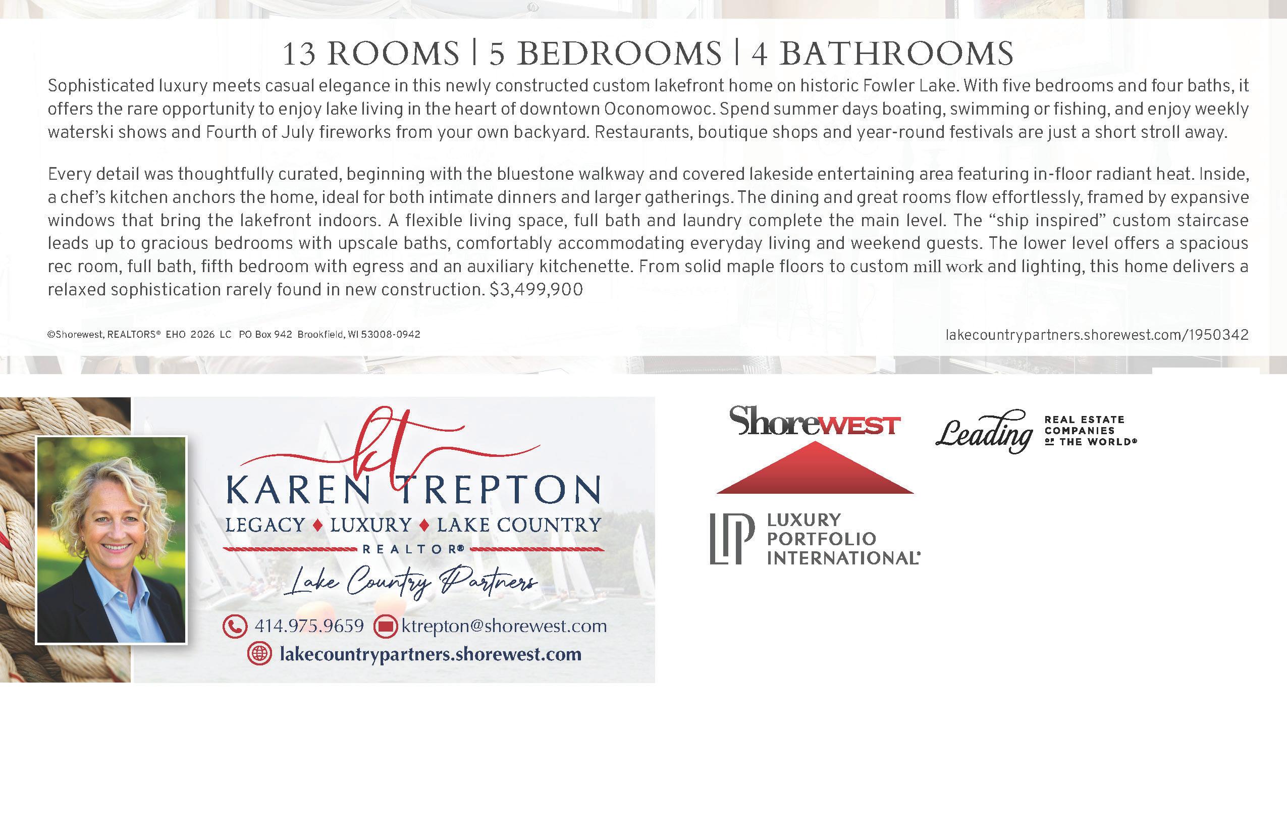 4 BEDS • 3 BATHS • 2,448 SQFT • $550,000 Enjoy lakeside living on Lake Winnebago in this well-maintained home with modern updates throughout. Enjoy the warmth of newly installed flooring that flows seamlessly through the main living areas and lower level, enhancing both comfort and appeal. The home boasts three beautifully updated bathrooms. A bright and inviting three-season room, complete with new windows and fresh flooring, provides the perfect spot to relax and take in the Sunrise along with the peaceful surroundings. Whether you’re entertaining, enjoying the view, or simply unwinding, this home offers the perfect blend of comfort, style, and waterfront charm. Use year round or a vacation home or Rental.