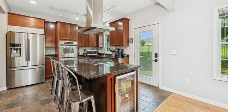 • Chef’s kitchen w/ Subzero fridge, Wolf ovens, quartz counters & Knotty Elder cabinetry